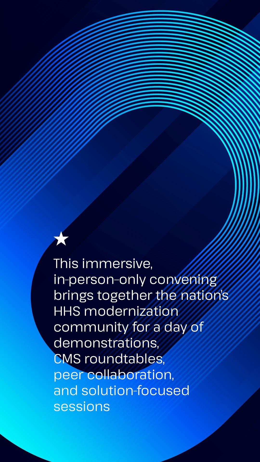 This immersive, in-person–only convening brings together the nation’s HHS modernization community for a full day of demonstrations, CMS roundtables, peer collaboration, and solution-focused sessions designed to help agencies accelerate readiness, strengthen cross-sector coordination, and prepare for community engagement go-live.