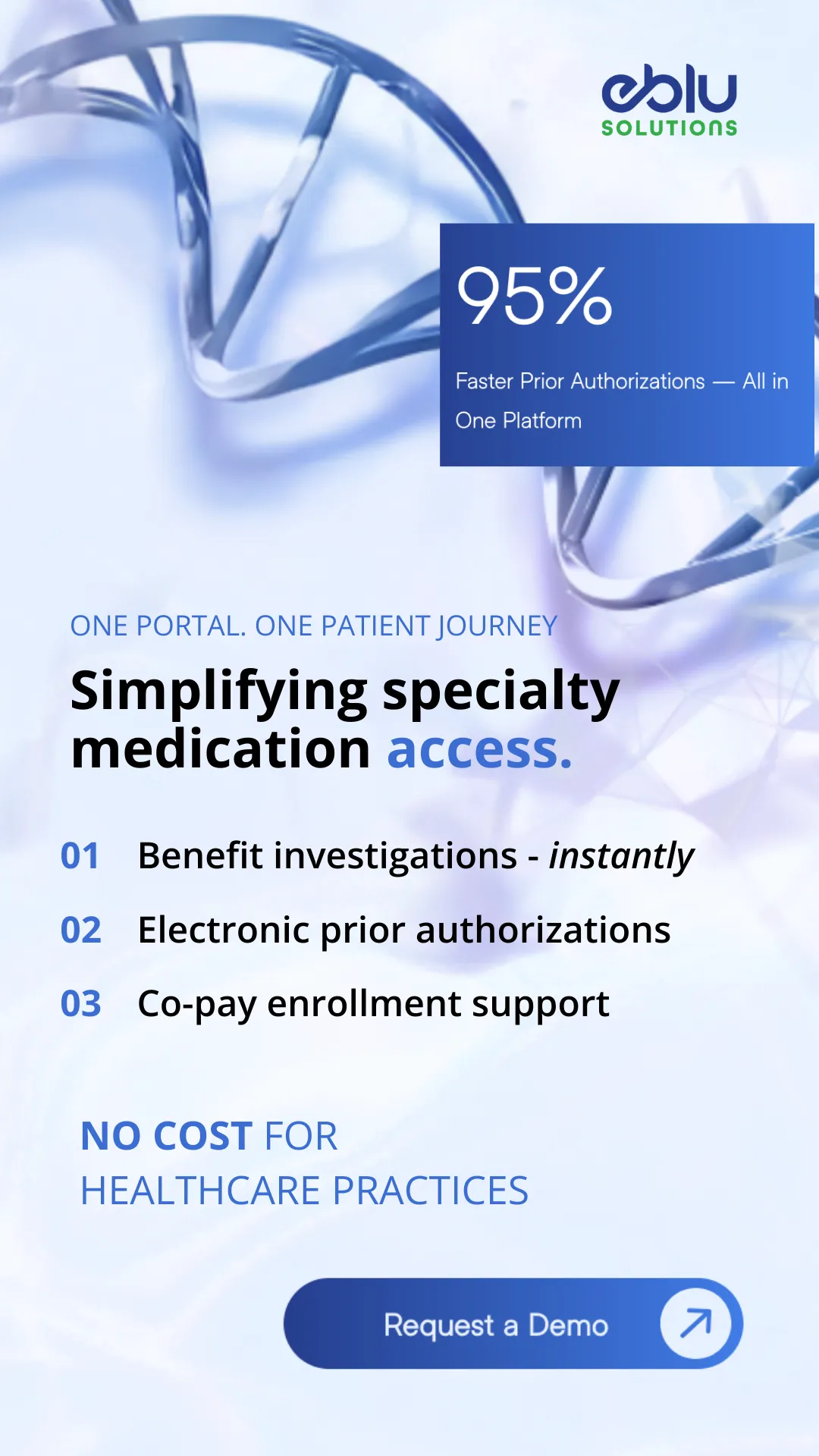 eBlu Solutions accelerates patient access to specialty infusion and injection therapies by streamlining benefits verification, prior authorization and support programs-all in one place.
