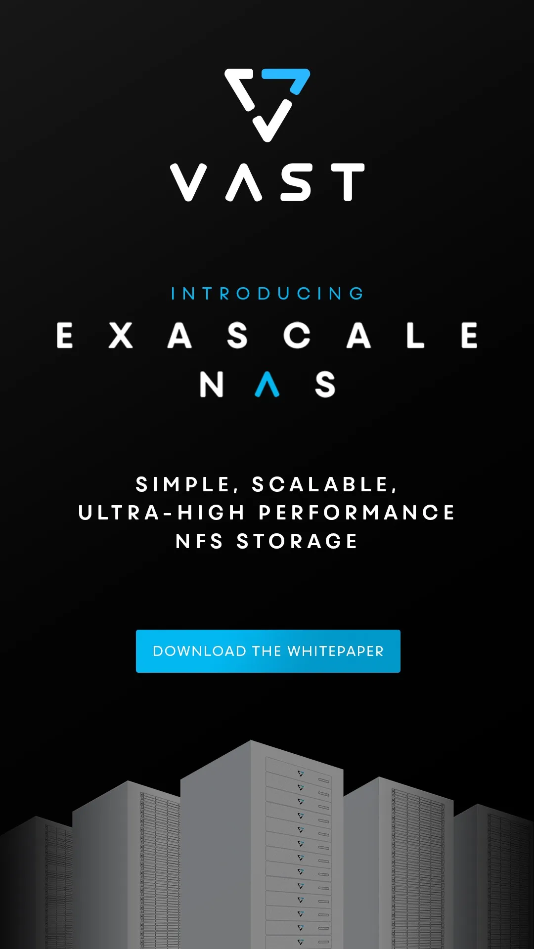 Welcome to the future of storage: simple, enterprise scale-out all-flash NAS. VAST Data's Universal Storage is a groundbreaking scale-out storage solution that eliminates complex storage tiering and brings an end to the HDD era in the data center. Universal Storage breaks the decades-old tradeoff between storage performance and capacity with a new storage architecture that enables unlimited processing on affordable flash, at up to exabyte-scale. Leading organizations around the world deploy Universal Storage for a wide range of applications, industries, and data infrastructures.