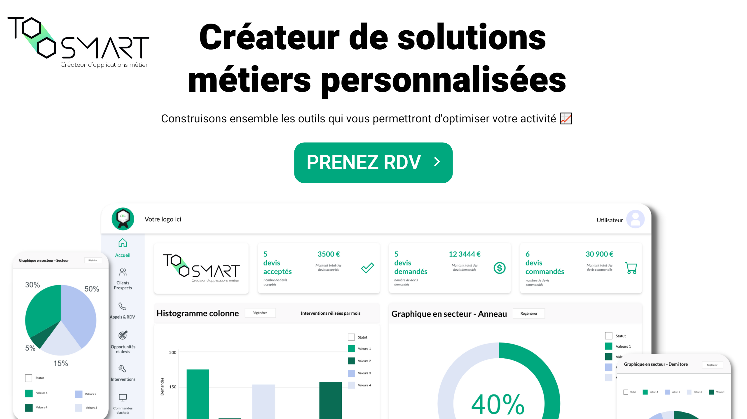 TooSmart appréhende les besoins et les usages de l’entreprise pour vous créer des applications métiers personnalisées et connectées à vos outils.