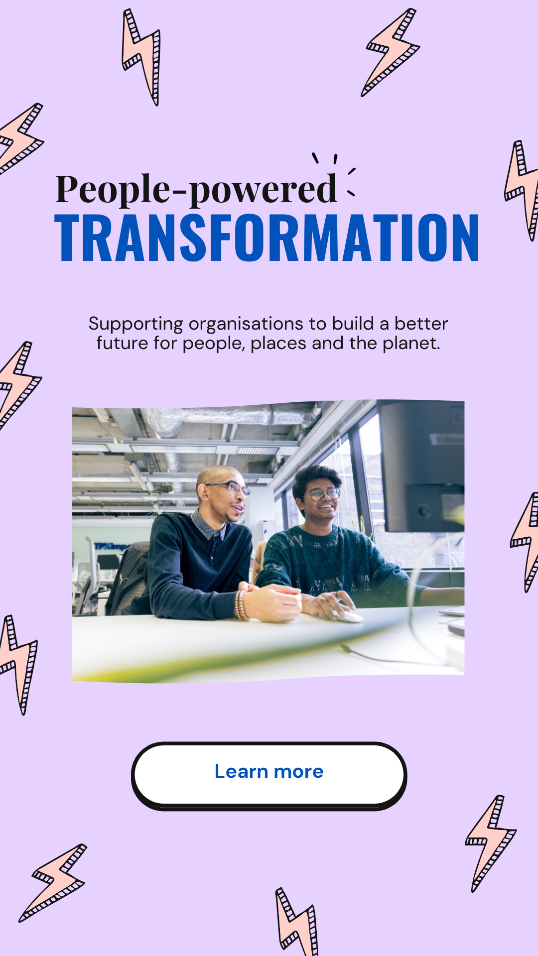 TPXimpact is a digital transformation company on a mission to build a future where people, places and the planet are supported to thrive. Combining vast expertise in human-centred design, data, experience and technology, we help the public, private and third sectors with their digital transformation journey, delivering high quality solutions that improve services, experiences and outcomes. We’re passionate people who work in close collaboration with our clients to create sustainable solutions ready for an ever-evolving world.