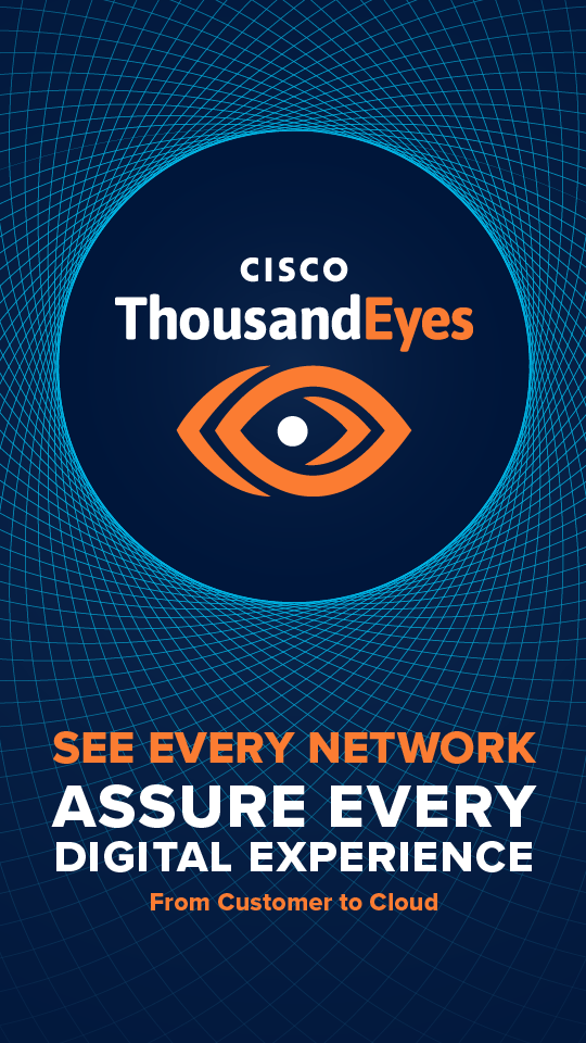 Cisco ThousandEyes empowers organizations to see, understand, and improve digital experiences for everyone, across any network. Combining a holistic view of end-to-end service delivery, collective and proactive intelligence, and automated workflows, ThousandEyes is an assurance solution that enables organizations to operate faster and more effectively so they can deliver flawless digital experiences in an Internet and cloud-centric world.
