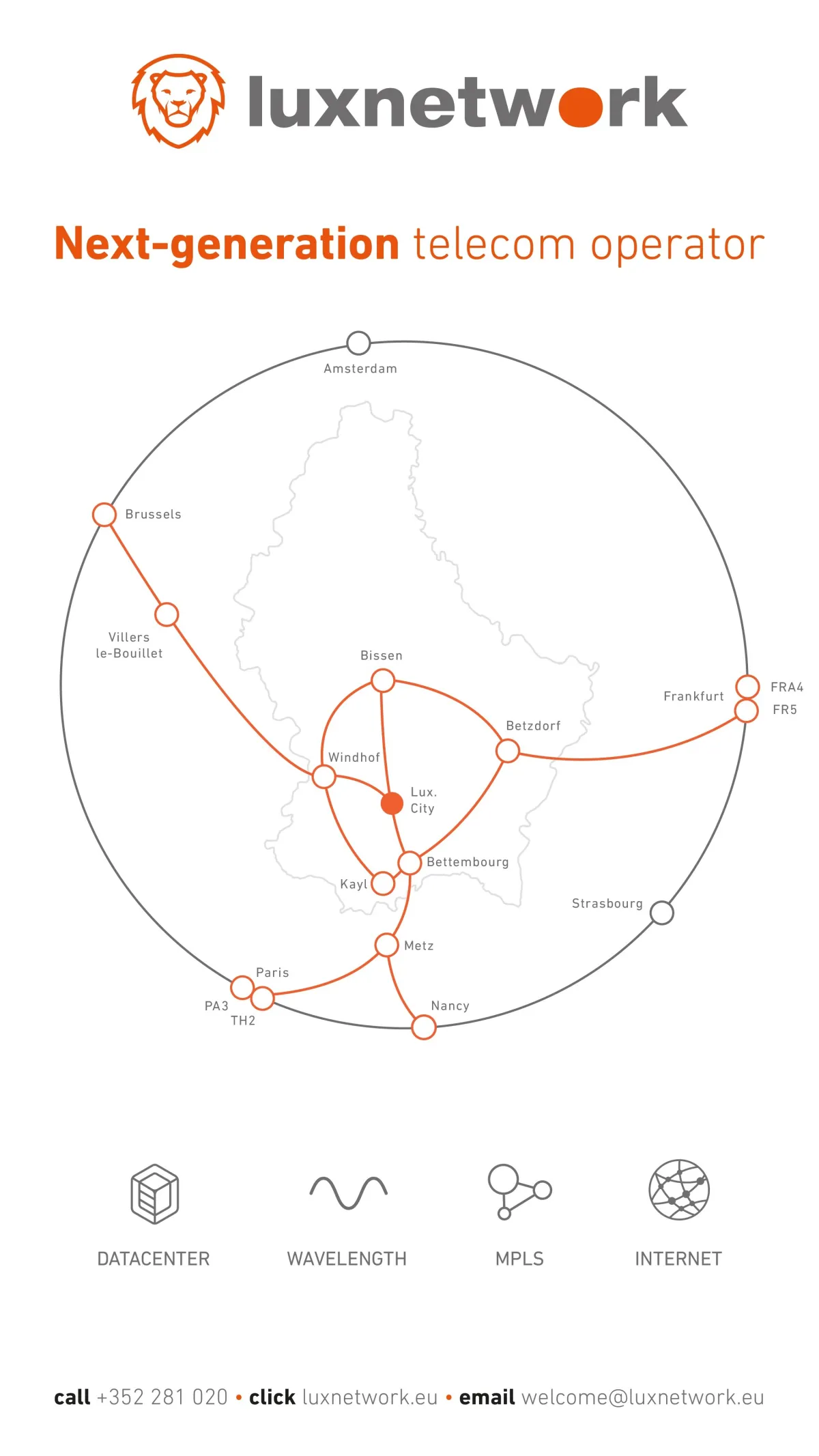 LuxNetwork provides connectivity solutions and network infrastructure services to support business challenges of corporate customers. We provide a scalable and flexible network that enables the optimization of high quality bandwidth while ensuring performance and robustness.