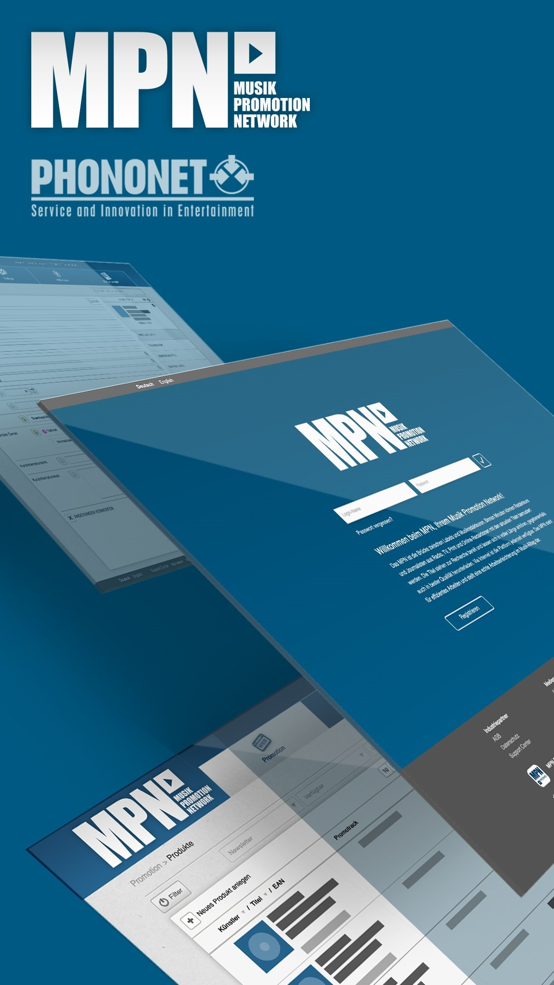 MPN (Musik Promotion Network) ist die führende Bemusterungsplattform in Deutschland. Binnen Sekunden können Labels über 2.400 Redakteure mit ihren neuen Veröffentlichungen bemustern. Die Titel stehen den Medienpartnern rund um die Uhr via Internet zur Verfügung. Sowohl für die Labels wie auch für die Musikredakteure stellt das MPN eine echte Arbeitserleichterung in ihrem Alltag dar...