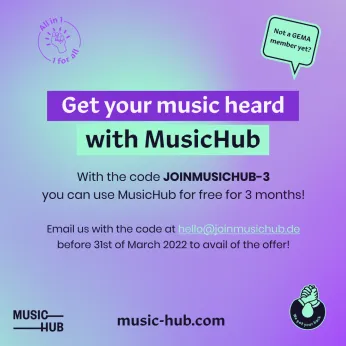 Our hub is powered by GEMA and was founded 2020 in collaboration with Zebralution. Our common goal is to offer a variety of intuitive tools and solutions for musicians to get their music heard, plus connect to a broader audience, fellow musicians and supporters. We aim to provide musicians, newcomers and established players alike with a fully stocked toolkit, enabling them to unleash their creative potential and build a sustainable career, one release at a time. Get the opportunity to meet the team and exchange with them directly!