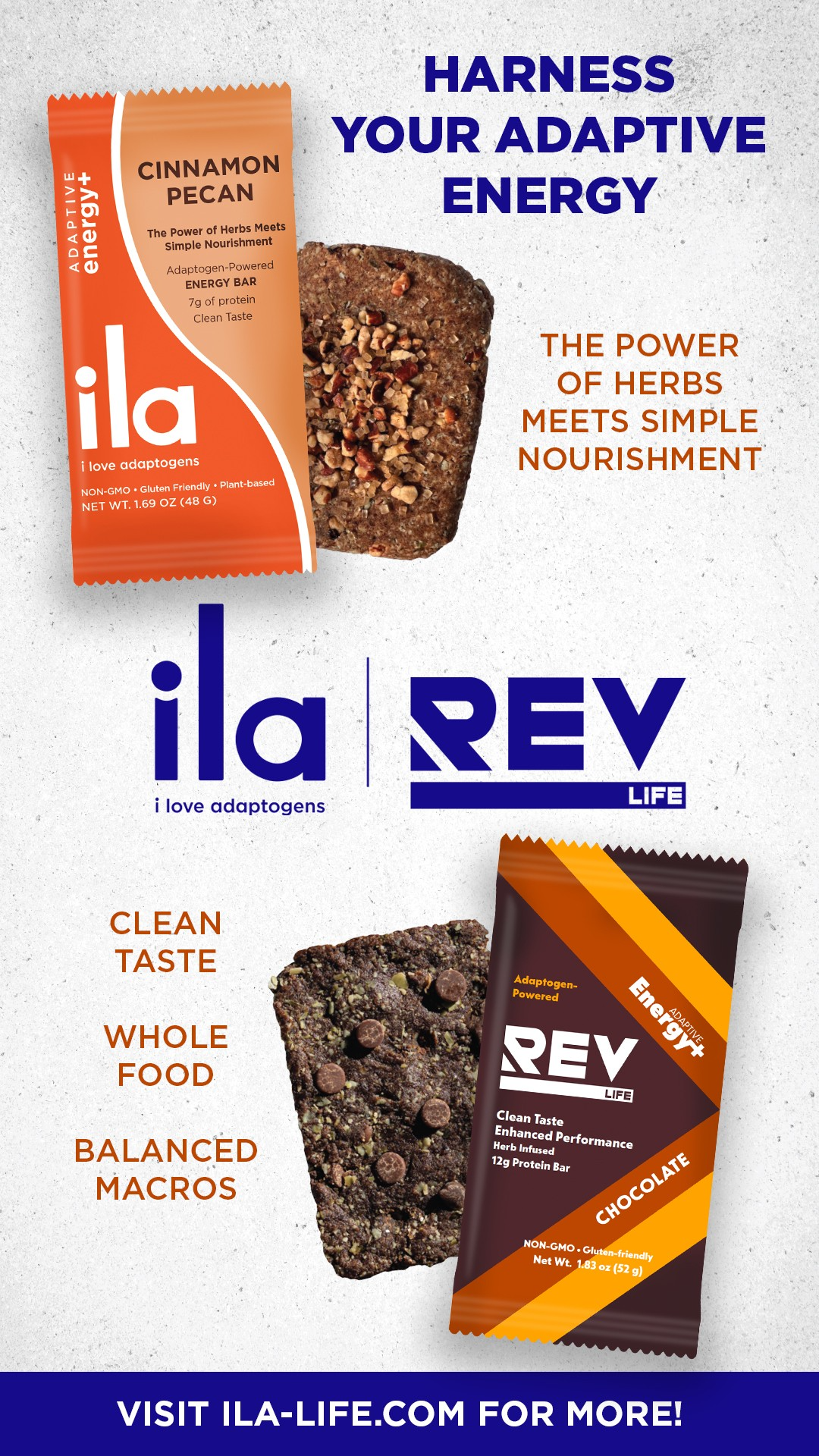 ILA & Rev are carving an innovative space in functional nutrition, providing adaptive energy through herbs that work with your body’s unique needs to increase energy, handle stress, and find balance. Our whole-food energy bars have a refreshingly clean taste, plus a super blend of adaptogenic herbs. Every product, from energy bars to coffee mix-ins, features this great blend, plus balanced macros for lasting energy that won't deplete.
