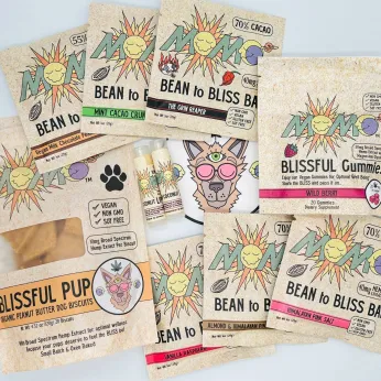Discover your inner BLISS with each of MOMO's unique products- All infused with Broad Spectrum Hemp Extract- There is something for everyone: Ethically sourced Peruvian Cacao in our Bean Bean to BLISS Bars, Deep moisturizing Coconut Lip BLISS, BLISSFUL PUP Vegan Dog Biscuits for your fur babies and newly launched BLISSFUL Wild Berry Vegan Gummies... Premium quality/ Lab tested for purity and potency/Vegan/ Non-GMO/Organic ingredients/Handcrafted/ Small batch/ Woman owned small business...