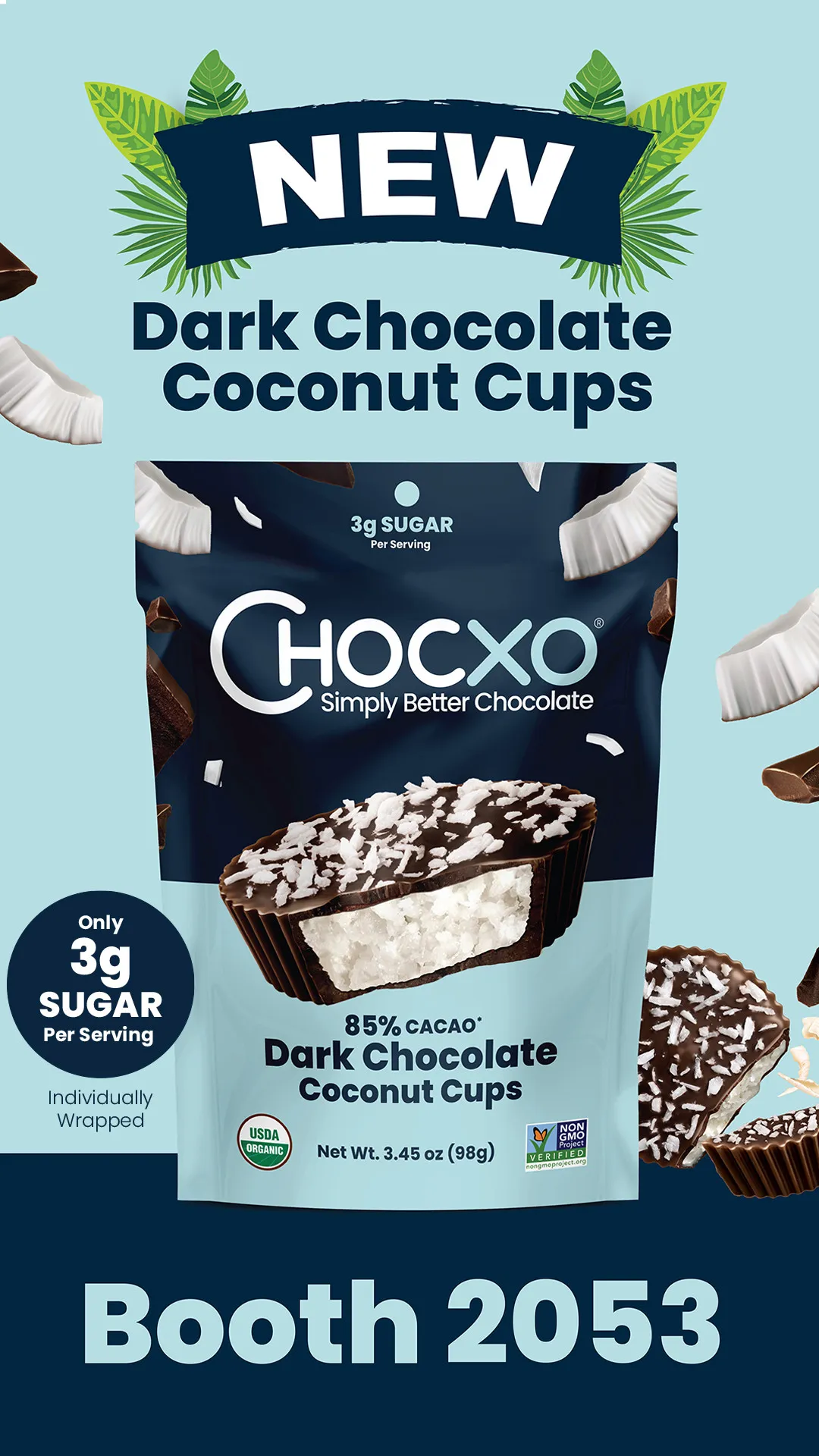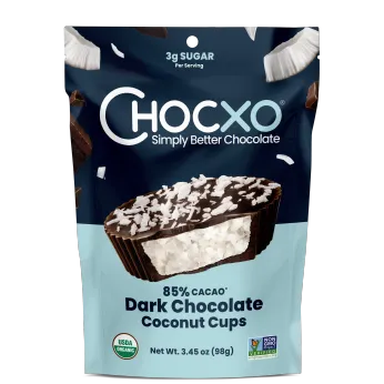 Born from over a century of combined confectionery and chocolate making experience, Chocxo was founded in 2014 by passionate chocolatiers on a mission to create truly indulgent chocolate that is better for you and the planet. Chocxo crafts a line of natural premium chocolates from simple, organic ingredients that are lower in sugar, without artificial sweeteners. Chocxo products are made with 100% Sustainable Cocoa and are Certified Plastic Neutral. Chocxo Dark Chocolate Peanut Butter Cups have been recognized by Good Housekeeping as the Best Chocolate Nut Butter Cup and by Cosmopolitan as the Best Chocolate Snack. Chocxo recently introduced their newest innovation, Organic Dark Chocolate Coconut Cups with only 3 grams of sugar per cup. All Chocxo chocolates are made in Vancouver, BC and ship to chocolate lovers worldwide. Chocxo - Truly Indulgent. Lower sugar. Always organic.