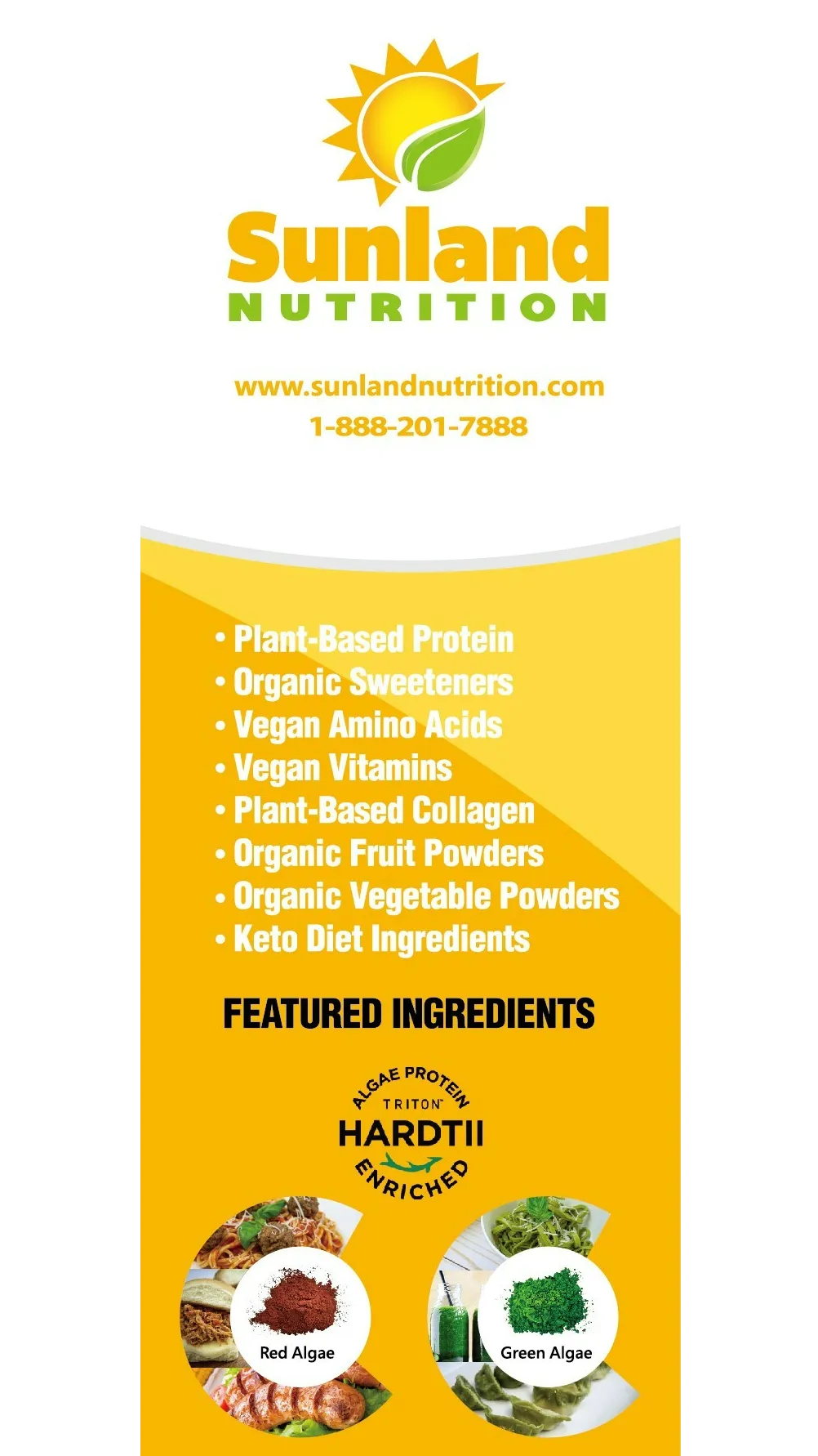 Sunland Nutrition Inc is an industry-trusted innovative source of raw materials in the Nutraceutical, Sports Nutrition, Food and Beverage, Personal Care, and Feed marketplace. With a longtime strong relationship with our manufacturers, we are able to provide a complete line of high-quality ingredients to our customers and promise to help build your business.