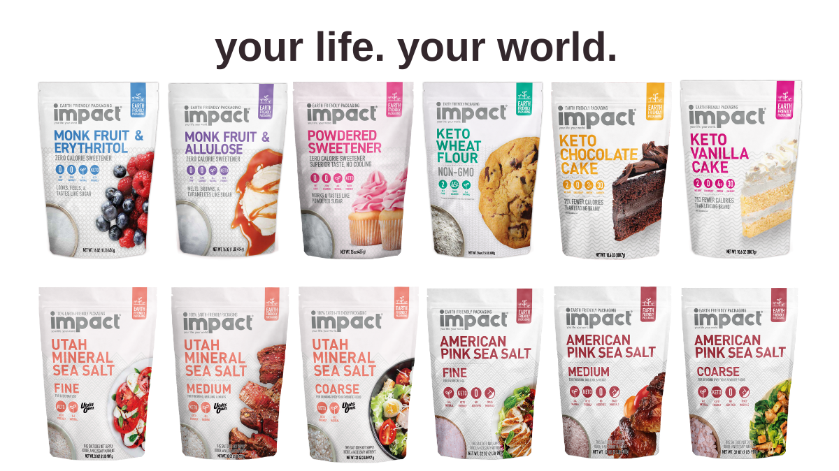 Impact Product's slogan is "impact your life. impact your world." We are driven to have a positive impact on the planet, and the people in it. First, take a look at our earth friendly packaging. Our pouches are made from recovered ocean-bound plastics and renewable plant based materials. With each purchase we are all helping do a small part in preserving our oceans and planet.