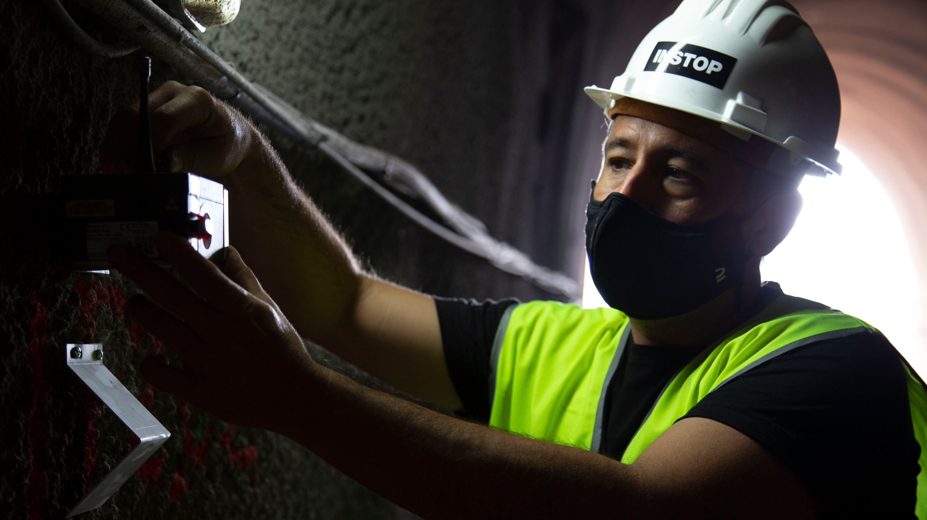 Tunnel construction and modification requires precise measurement of convergence and divergence to safeguard the structure, maintain safety and provide the assurance needed to maintain efficient progress. Established survey methods include manual measurement using tape extensometers and automated methods using laser scanners or automated total stations. Drawbacks include the need for frequent access, power supply, cabling, and cost. Further challenges include highly restricted access to many tunnels, distance from the portal, constraints on physical space and aggressive conditions that can include excessive heat, moisture, vibration, humidity, acidity/alkalinity, dust and combustible gases. Over the last three years, developers at Senceive have designed and built a laser-based optical displacement sensor (ODS) that has changed the tunnel monitoring landscape. Following trial deployments to prove reliability and repeatability it is now possible to monitor tunnel convergence and deformation remotely with a fully automated method that has proven to be robust, repeatable and precise. It is quick and easy to install and to set up, and is not affected by any of the tunnel-related challenges listed above. An array of three ODS sensor and its reflector target can be installed in just 20 minutes and is maintenance free for years. Tunnel movement is measured to sub-millimetre precision with repeatability of ± 0.15mm. Integration of a triaxial tilt sensor allows slope distance to be converted to horizontal and vertical changes, and allows rotational movement to be determined. ODS nodes are connected to a wireless communications network via a solar-powered gateway outside the tunnel, with data instantly transmitted to the internet. Applications include new-build, refurbishment and long-term structural health monitoring. A current project in Spain involves the first large-scale use of optical displacement sensors to monitor deformation in three old masonry tunnel being converted by Dragados for modern high-speed rail use. Modifications including a sprayed concrete lining and track lowering mean there is a need to understand convergence/divergence and settlement/heave. Spanish monitoring specialist Instop considered all options, but challenging site conditions led to rejection of all “conventional” methods. The use of automated total stations was ruled out because construction plant and temporary props would obscure line of site, and very dusty conditions would obscure prisms without frequent cleaning. The absence of a power supply further complicated matters. They therefore selected the new ODS technology from Senceive. In this case a long-range wireless system was chosen because it had the power to relay data from the sensor locations to a solar powered gateway at the tunnel portal with an internet connection. As well as measuring movement at points across the tunnel, longitudinal movement is being monitored using a series of tilt nodes mounted on steel beams fixed to the tunnel sidewalls. The tunnel monitoring system is fully integrated with rod extensometers installed in 6 boreholes above the tunnel to monitor settlement. This integration of methods has enabled main contractor Dragados to remove ballast and lower the track with confidence.