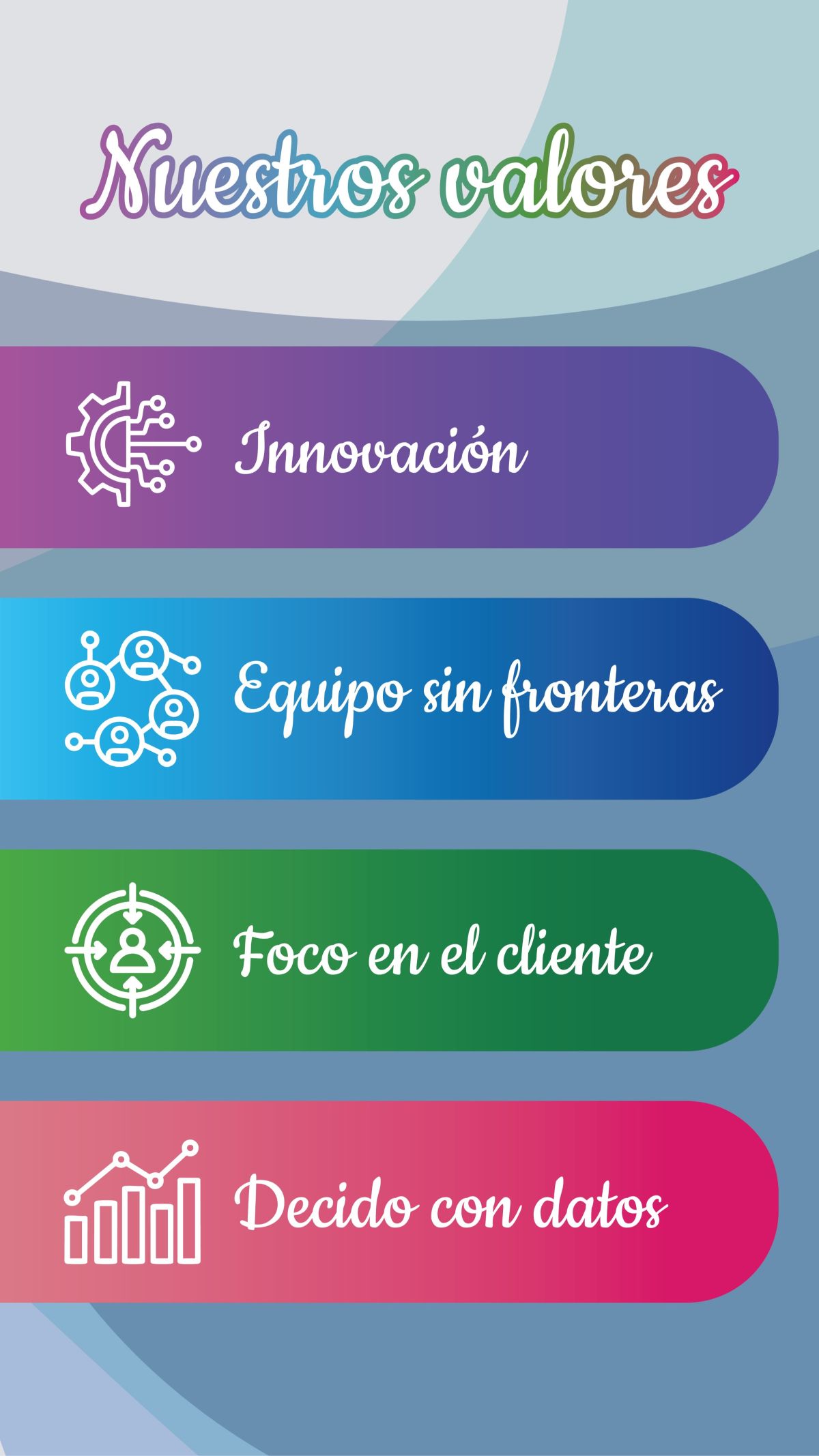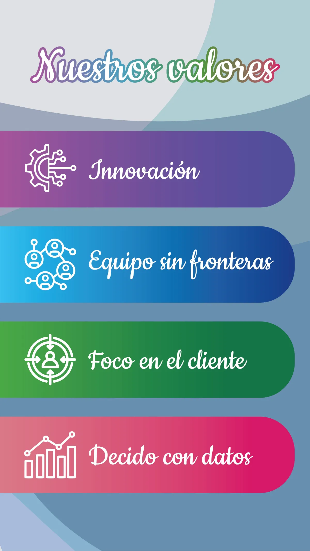 Nos destacamos por tener un fuerte ADN tecnológico y contamos con talento innovador a través del cual generamos soluciones digitales competitivas y de calidad. Día a día trabajamos en pos de la inclusión social, brindando diferentes recursos a empresas y acortando la brecha tecnológica en nuestra sociedad desarrollando nuevos productos enfocados en la transformación digital.