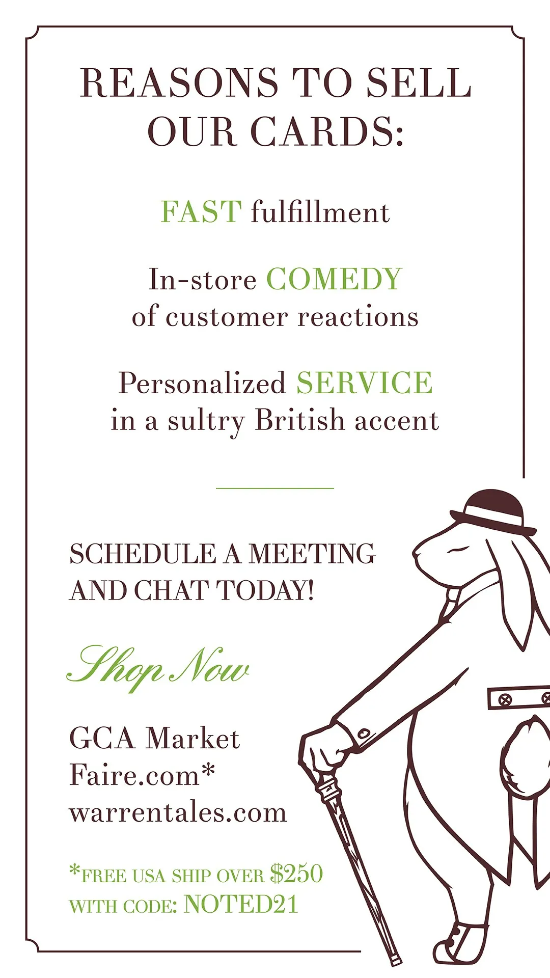 *Use code: NOTED21 for free ship promo on Faire (no code needed for GCA Market). Offer not available for national chain accounts.
