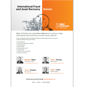 For over 20 years, Baker & Partners has been at the forefront of some of the most complex and high value offshore commercial and trust litigation. Baker & Partners is unique among offshore law firms in being led by a partnership of very experienced courtroom advocates who have between them conducted a very large number of trials in England, Jersey, the Cayman Islands and the BVI.