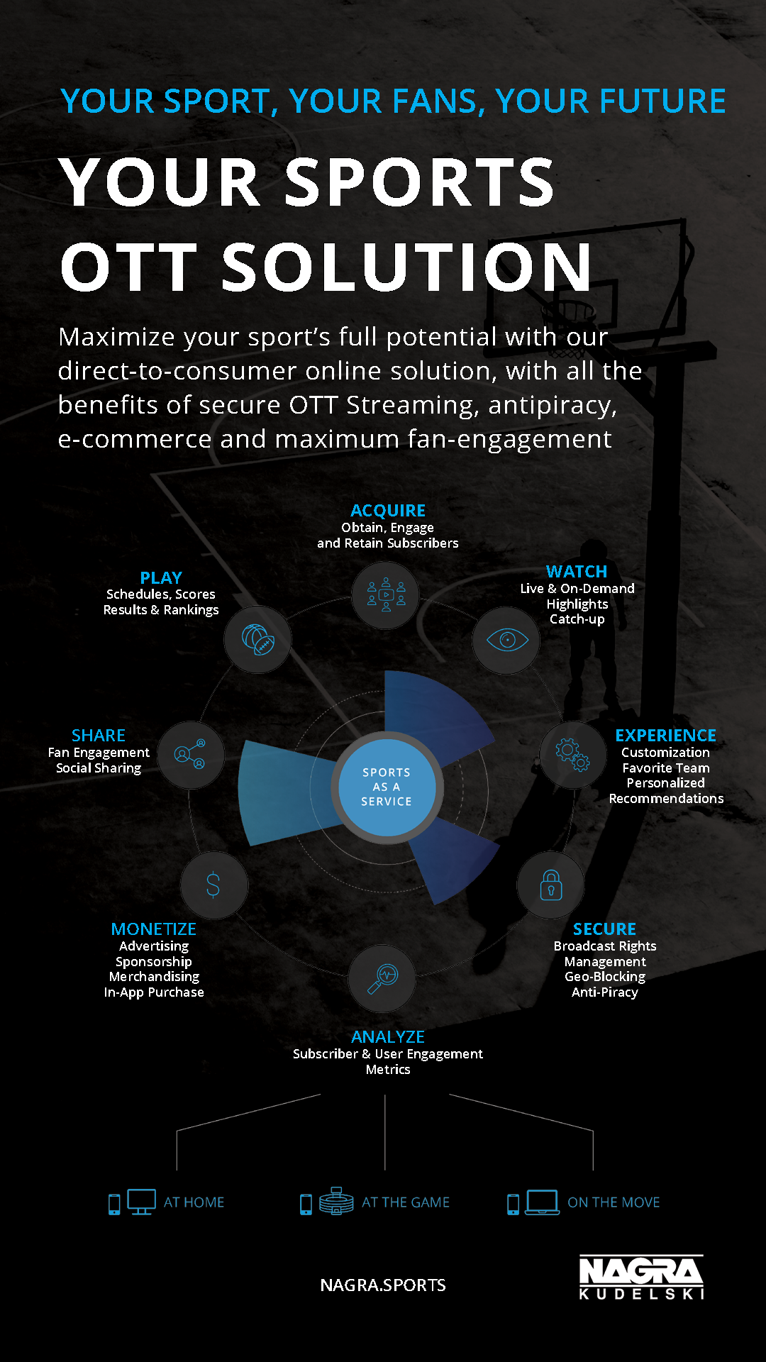 Our sports customers have used NAGRA’s sports-as-a-service offering to create new levels of fan engagement, drive uptake in their sport, track usage data and develop a database of players, fans, and officials with a focus on new business growth. It also ensures their sport investment remains secure every step of the way thanks to our Managed Security Services for sports.