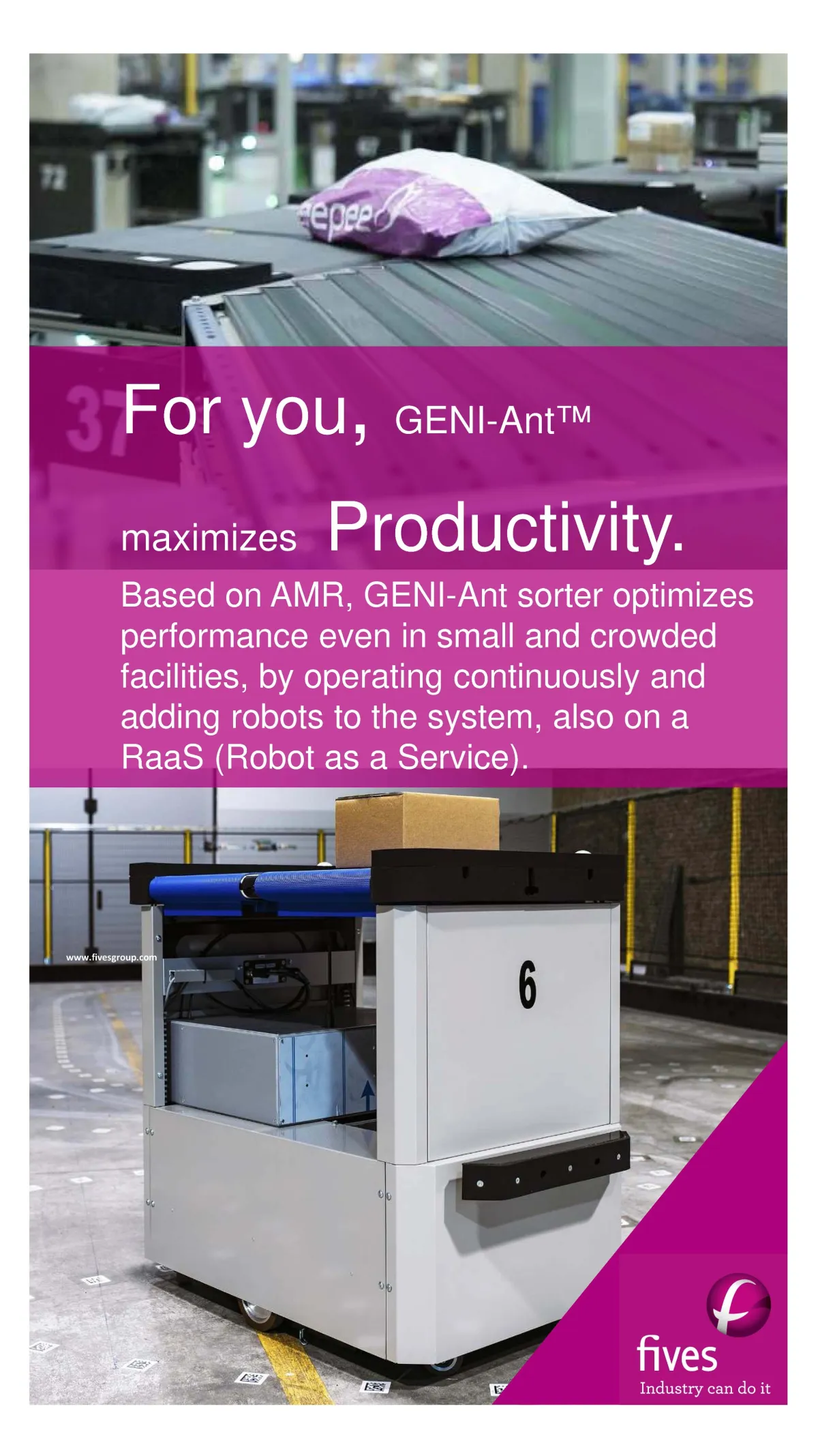 In order to respond to the constantly changing scenarios and offer the most flexible and resilient solutions, Fives introduced the first AMR-based sorter able to be loaded automatically with parcel of all types and sizes.