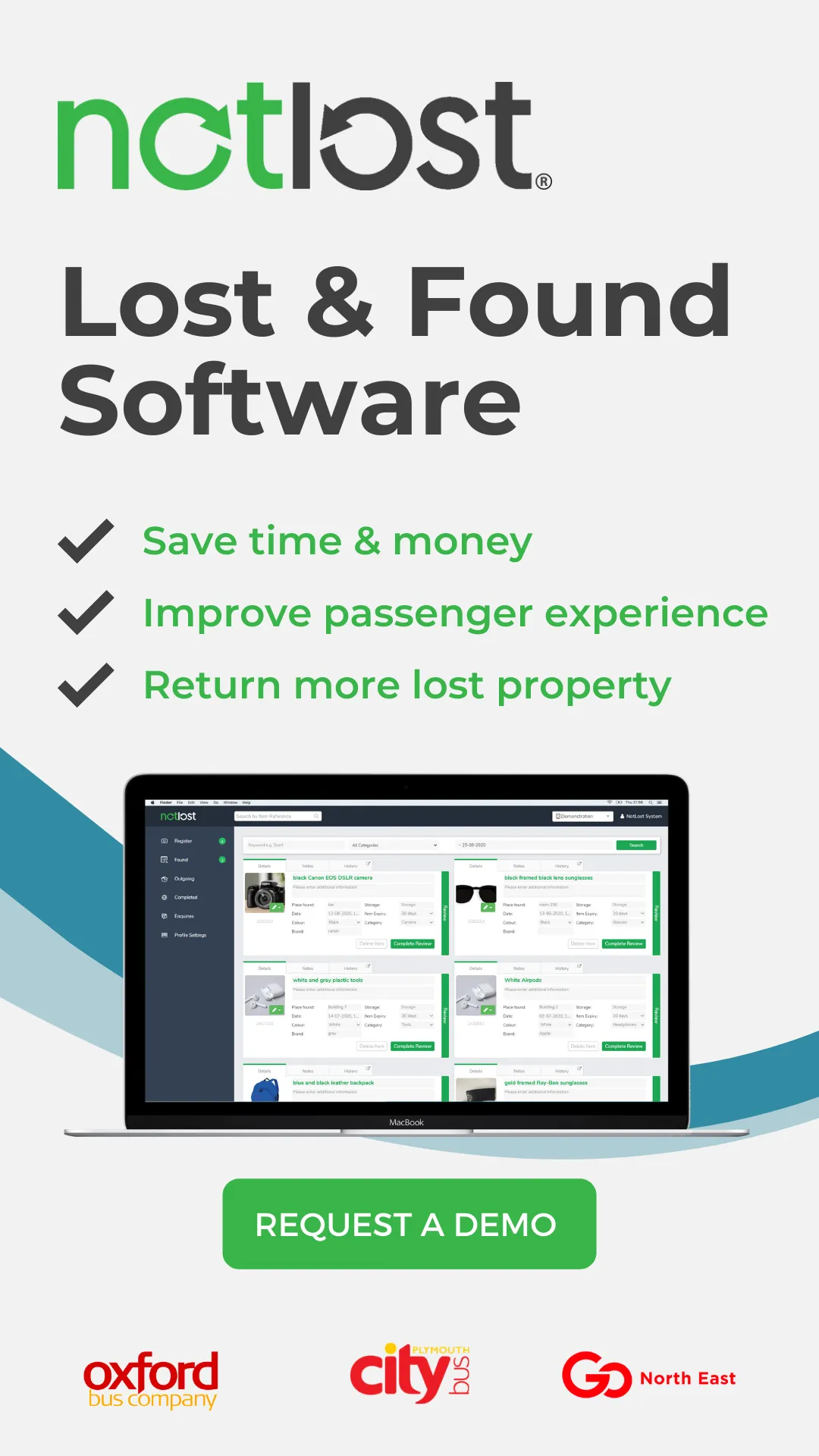 “Managing lost property across a large fleet that is always moving can be challenging at the best of times. NotLost ensures we provide a first-class service for our passengers, while also improving our internal operational efficiency.” Head of Customer Experience, Oxford Bus Company
