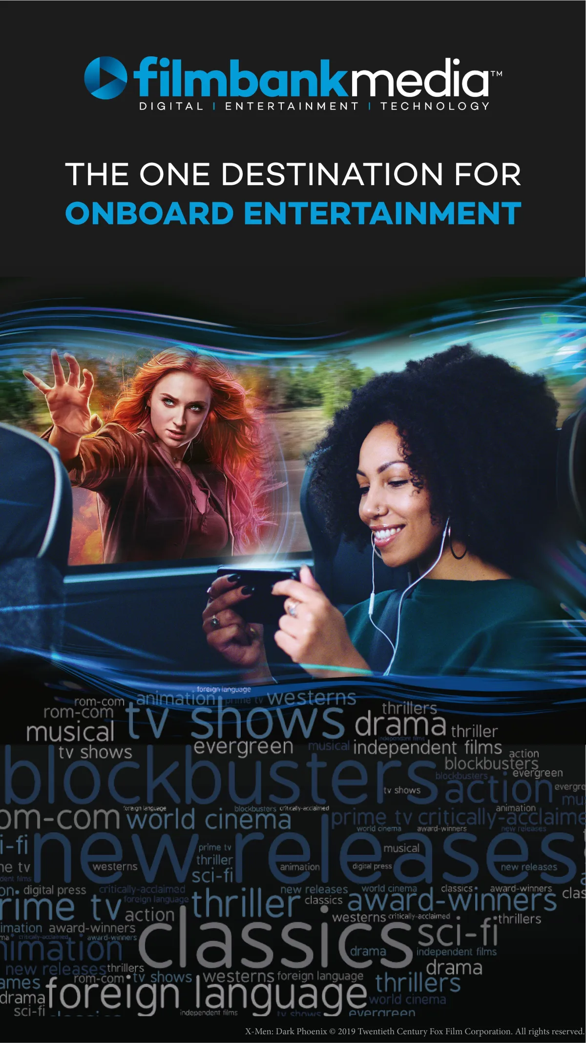 Filmbankmedia is a one-stop destination for all your passengers' entertainment needs. We license, curate, and service content internationally and also offer technology and marketing support. Our content portfolio includes thousands of films and TV episodes from major studios and independent distributors. We can supply audio and subtitles in multi-language. We also provide games, podcasts and digital print titles from over 1,000 daily, weekly and monthly newspapers and magazines. Working directly with technology providers, we deliver viewing solutions that are tailored to you and in compliance with the studios’ security requirements.