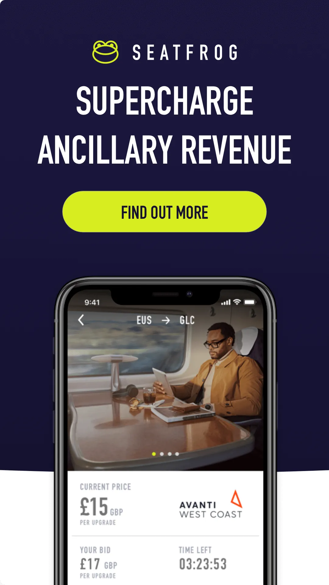 Seatfrog is a global travel technology company that partners with rail operators to allow standard class ticket holders to bid and upgrade to premium seats that would otherwise go unsold. Our world leading mobile upgrade platform allows rail operators to maximise revenue on distressed inventory by dynamically pricing and optimising upsell opportunities.