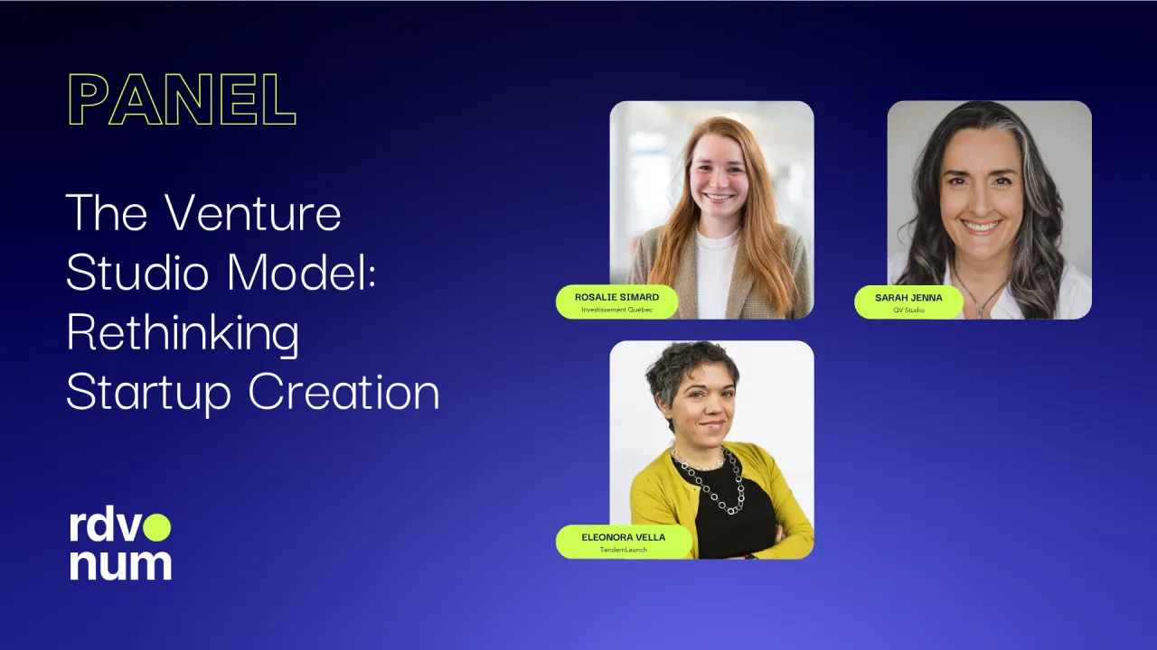 Ce panel réunira Sarah Jenna (QV Studio), Eleonora Vella (TandemLaunch) et Ben Yoskovitz (Highline Beta), trois acteurs clés de l’écosystème, qui partageront leurs perspectives sur les différentes approches du modèle venture studio — du partenariat avec des PME et grandes organisations à la commercialisation de technologies issues de la recherche.