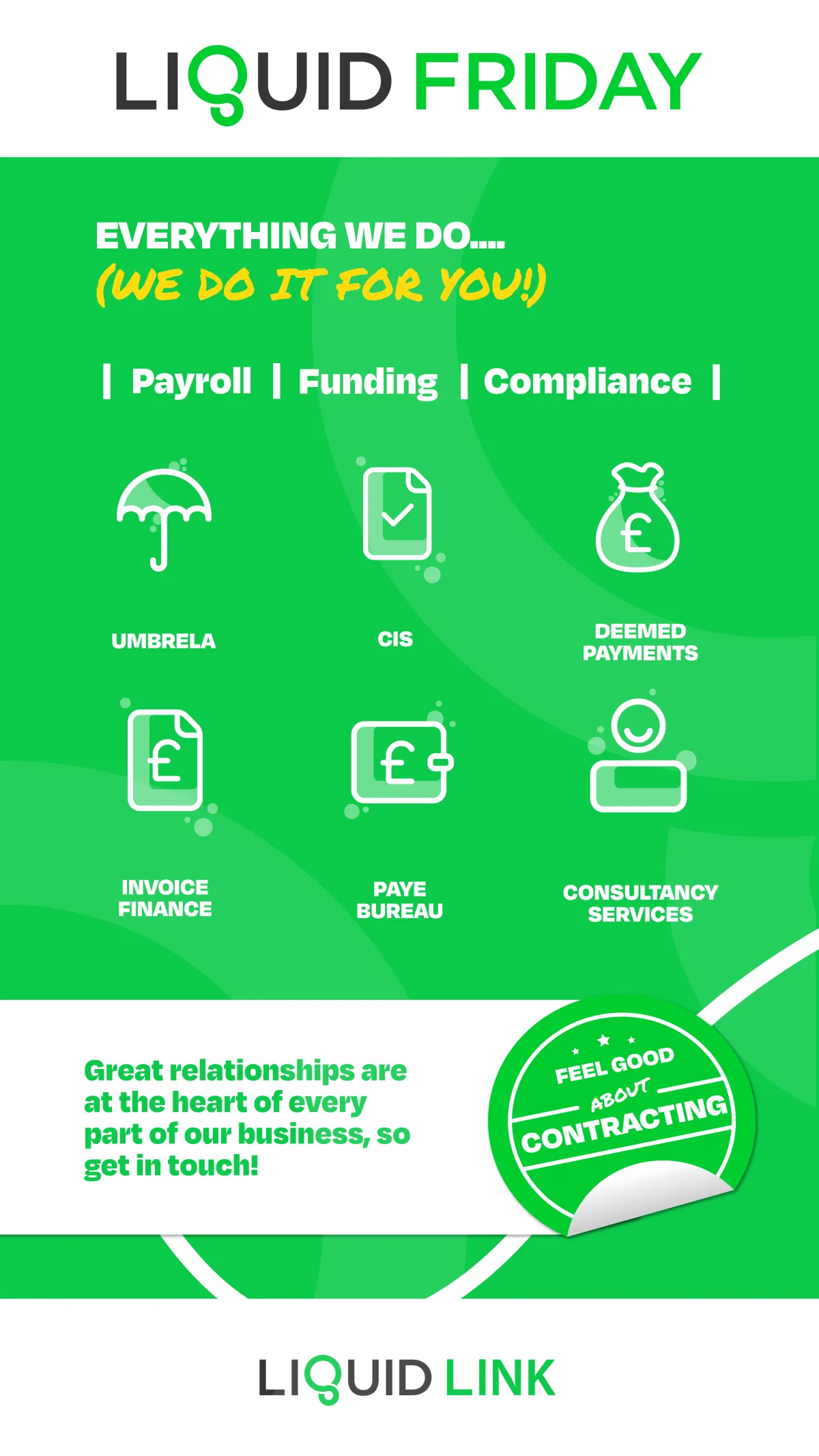 Liquid Friday is an REC business partner and an FCSA accredited provider of umbrella and CIS payroll, with a reputation built on personal service and integrity.