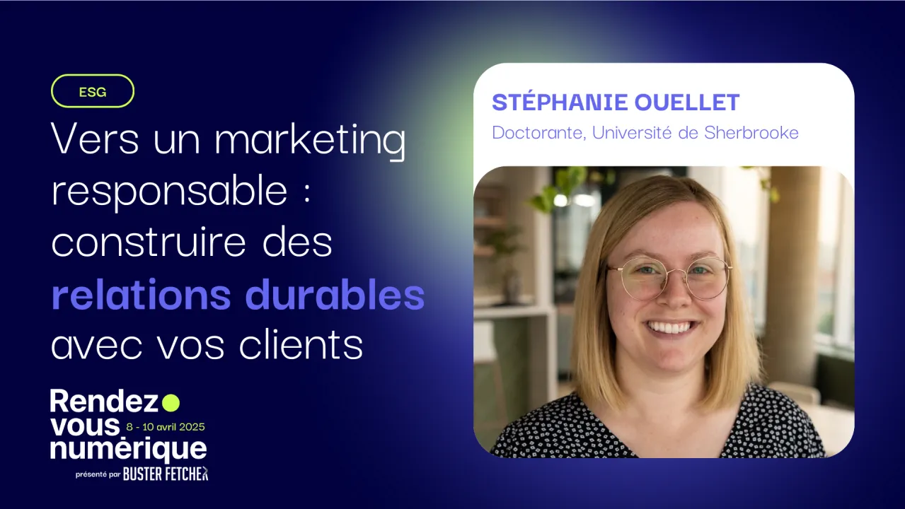 Face aux défis sociaux et environnementaux croissants liés à la consommation, une réflexion essentielle sur l'impact du marketing et le rôle des entreprises de demain s'impose. Inspirée par le documentaire « Buy Now: The Shopping Conspiracy » et alliant recherches académiques avec réalités d'affaires, cette conférence de Stéphanie Ouellet examine comment les entreprises peuvent adopter des pratiques de marketing responsable afin de rétablir le lien de confiance et transformer l'expérience de leurs clients, de plus en plus soucieux de l'environnement (et désillusionnés).