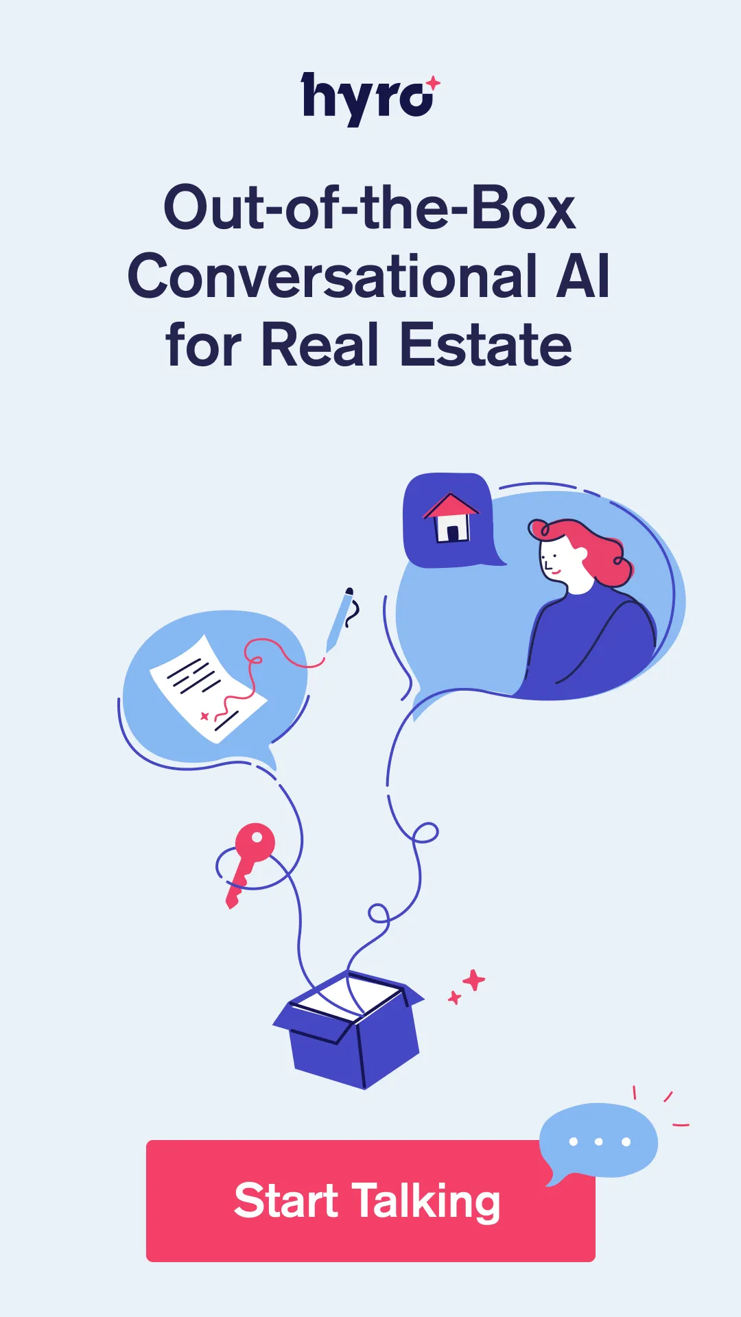 Digital channels in real estate have faced eye-popping traffic spikes. There's been a 494% increase in requests for agent-led virtual home tours , which have replaced in-person property viewings due to the pandemic. At Hyro, we use conversational AI to serve the sellers, renters, buyers and property managers that now demand better services, support and salesmanship online.