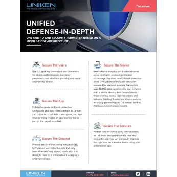 "At Uniken, our mission is to make connecting safe. This means enabling a phenomenal user experience in all interactions between the business and its customers that is completely secured against the modern threat environment. We add military-grade security to the mobile-first business, but without adding any of the friction that it usually brings. And, by extending that protection to every interaction across all channels, we let businesses engage with their customers without restrictions.