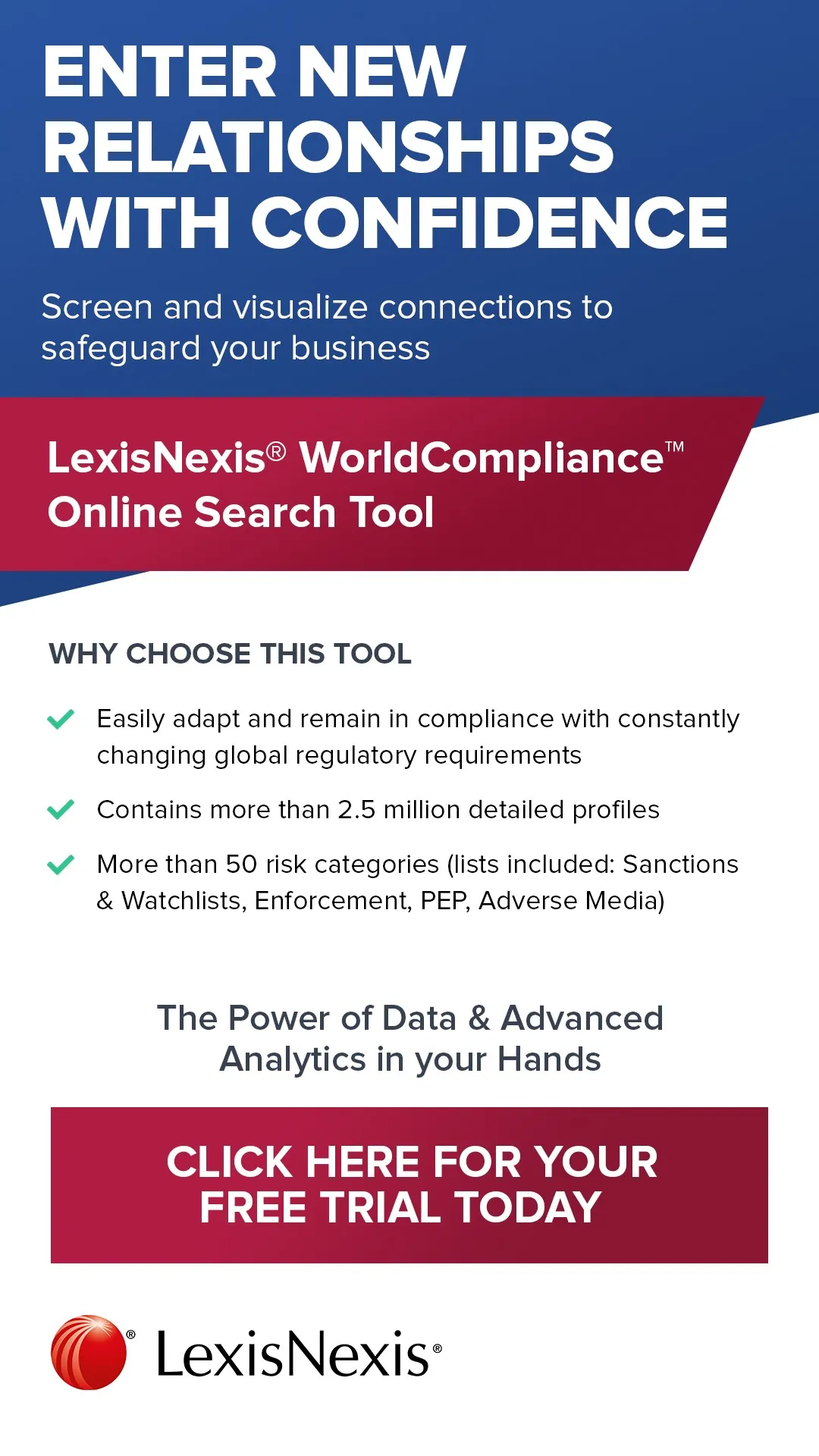 - Regulatory Compliance Solutions for AML/KYC checks on companies and individuals, through one of the most comprehensive knowledge base of risk entities commercially available, covering more than 50 risk categories, including - but not limited to - Politically Exposed Persons, Global Sanctions Lists, Global Enforcement Lists, Adverse media, Wanted Individuals and State-Owned Entities.