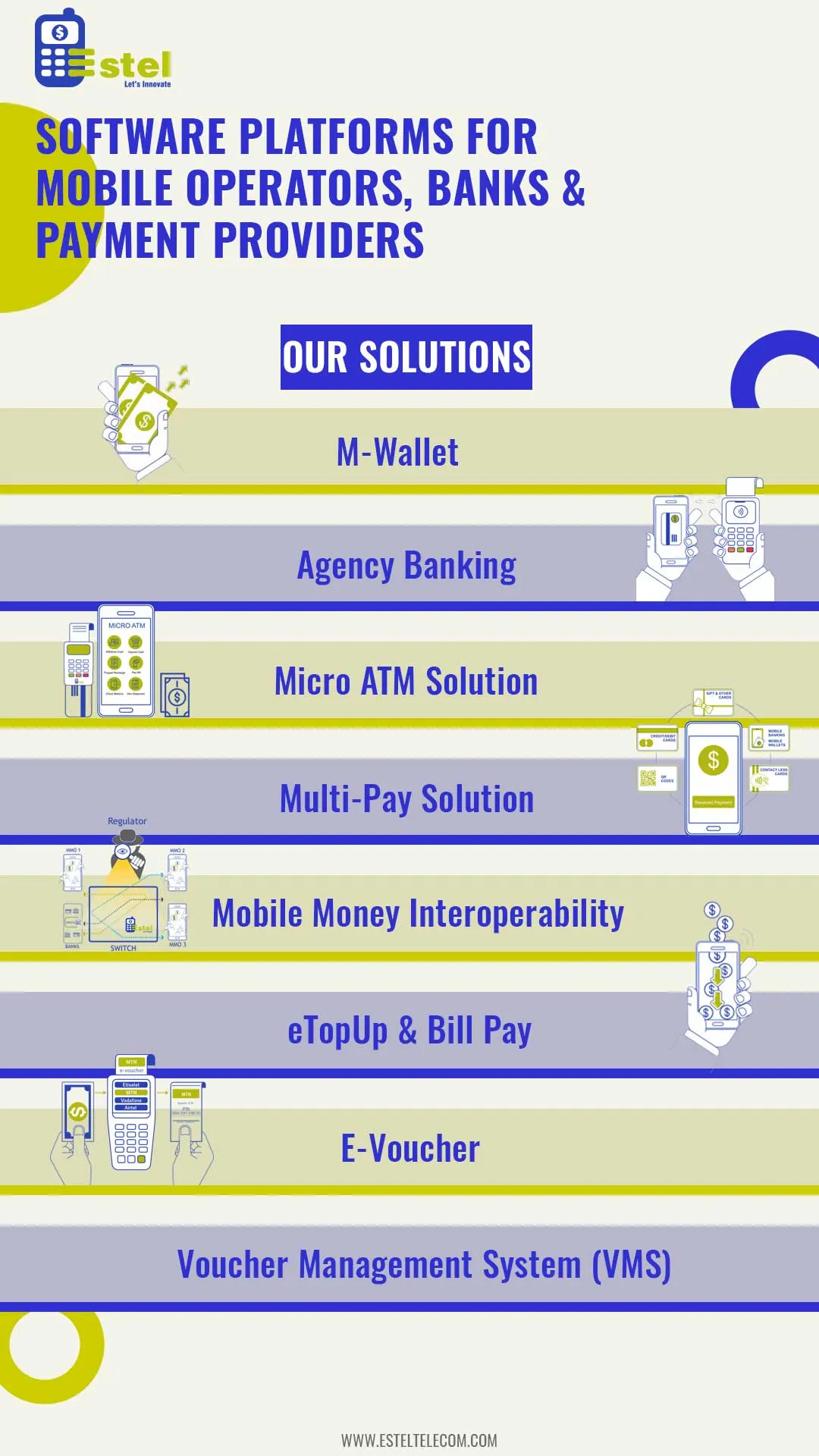 "Estel Technologies, an ISO 9001-2008 company, is a leading Mobile Financial Services technology provider serving Banks, Mobile Operators & Payment Service Providers in Asia, Africa, Middle East & Latin America. Estel currently serves 38 customers across 30 countries.