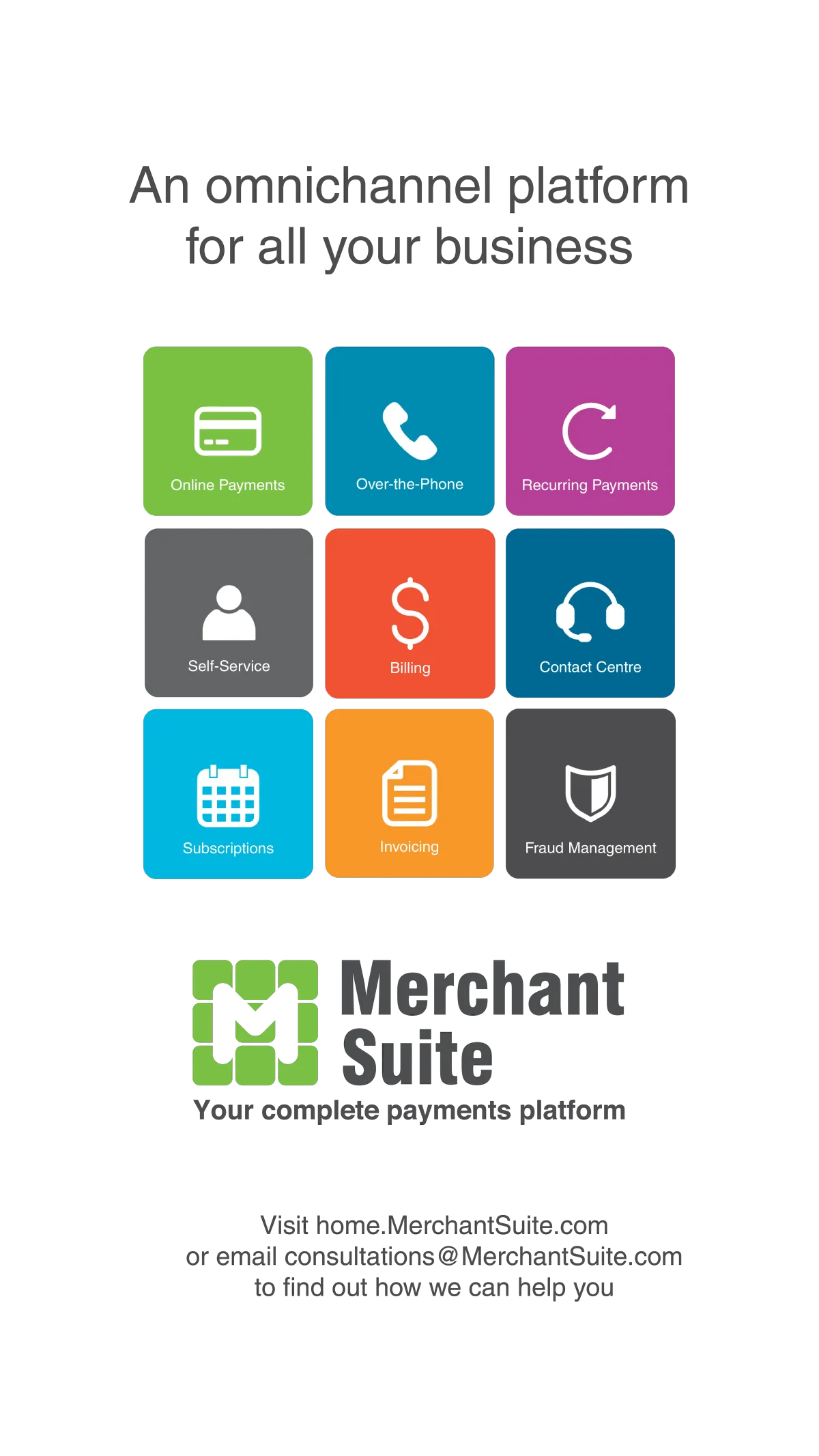 MerchantSuite is a secure payments platform that offers omnichannel business solutions for billing, invoicing, eCommerce, over-the-phone payments and more. Driven by the purpose statement “Every day, our Customers trust us to handle their most important customer interactions,” MerchantSuite’s mission is to continually develop innovative and secure payment products that suit the needs of any business.