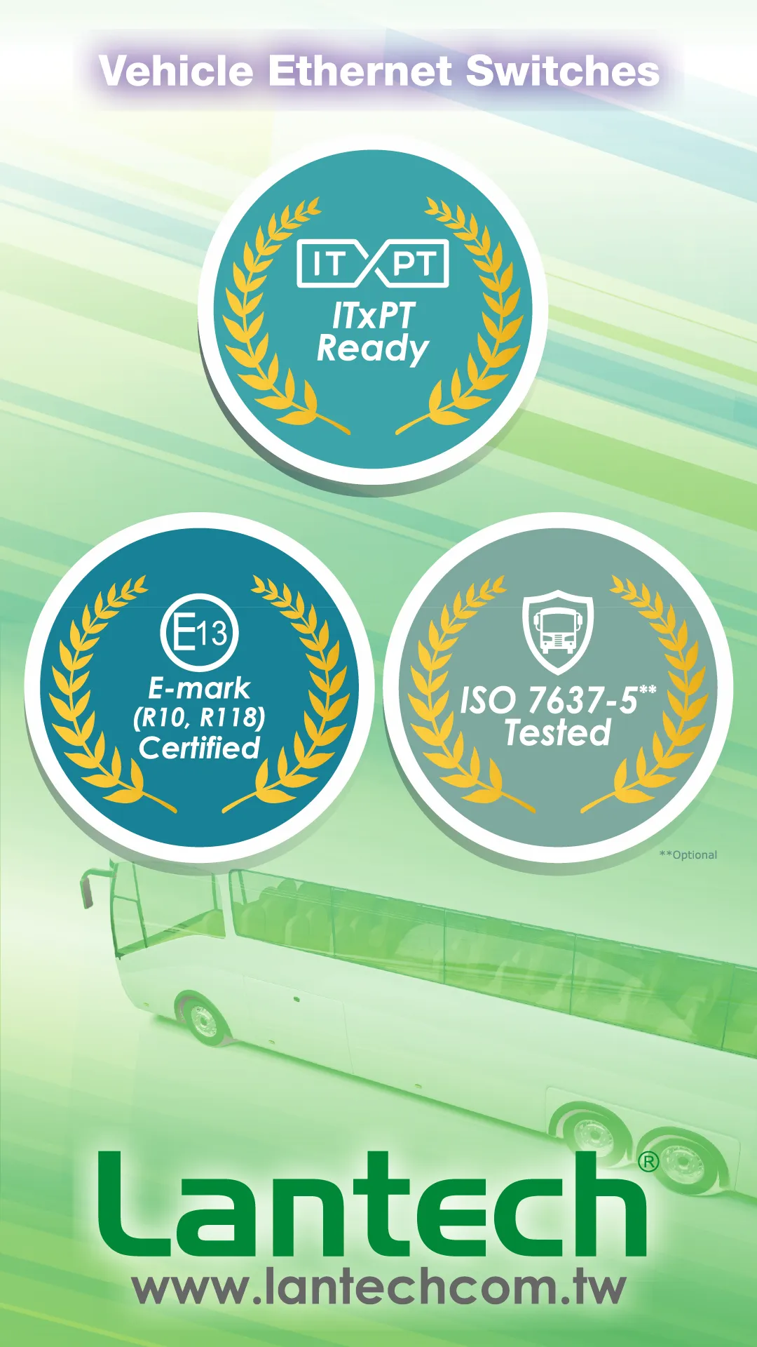 Lantech is an IRIS and ITxPT certified company focused on on-board EN50155 and E-Marking Ethernet switches and Wireless /LTE Routers development. Lantech is dedicated to transportation verticals where it covers onboard train/bus, stations, trackside, ITS and smart city. Lantech has been working together with key customers in effort to create up-to-date on-board passenger information, video security, track side data communications by providing rugged 10GbE, PoE Managed switches, LTE/ Wi-Fi Routers, ITxPT and E-mark certified solutions to fulfil various and critical requirements.