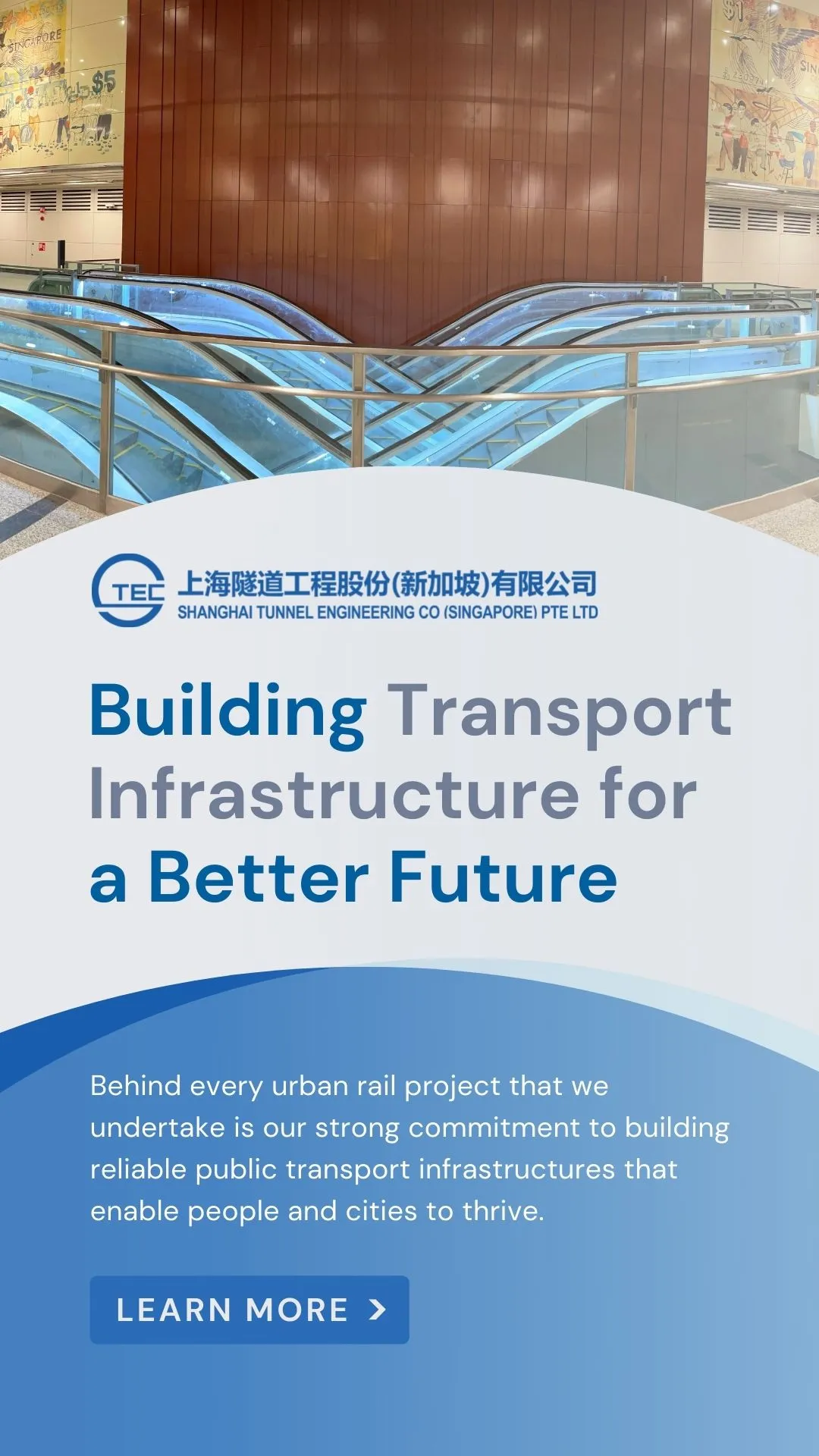 Established in 1996, Shanghai Tunnel Engineering Co (Singapore) (STEC) is a leading main contractor of rail transit and underground space construction in Singapore. In the last two decades, we have grown from a specialist tunnel subcontractor to a trusted main contractor with a proven track record in building large-scale civil infrastructures in Singapore.