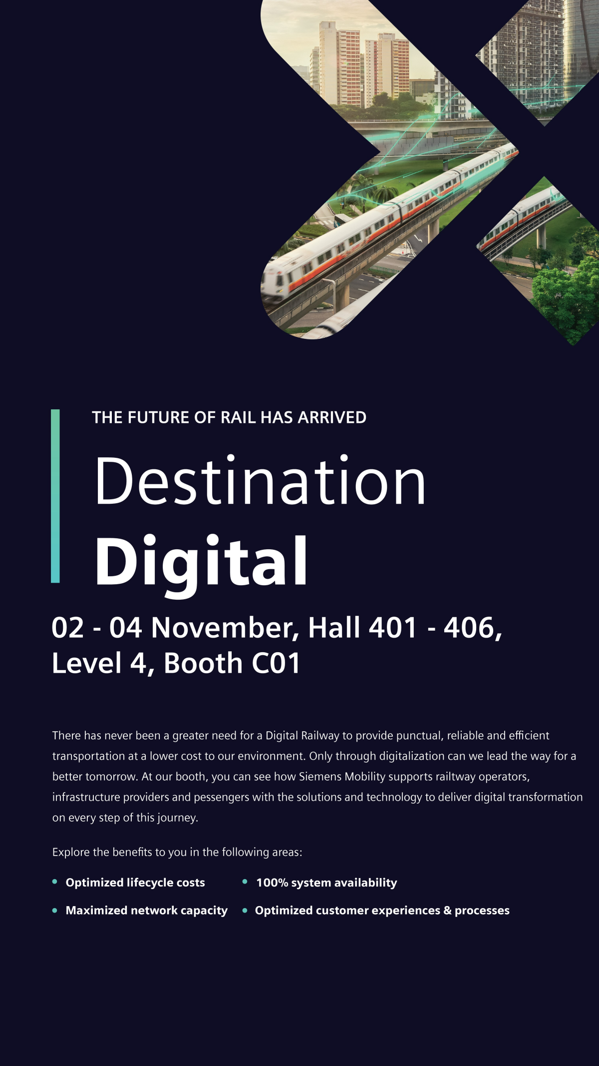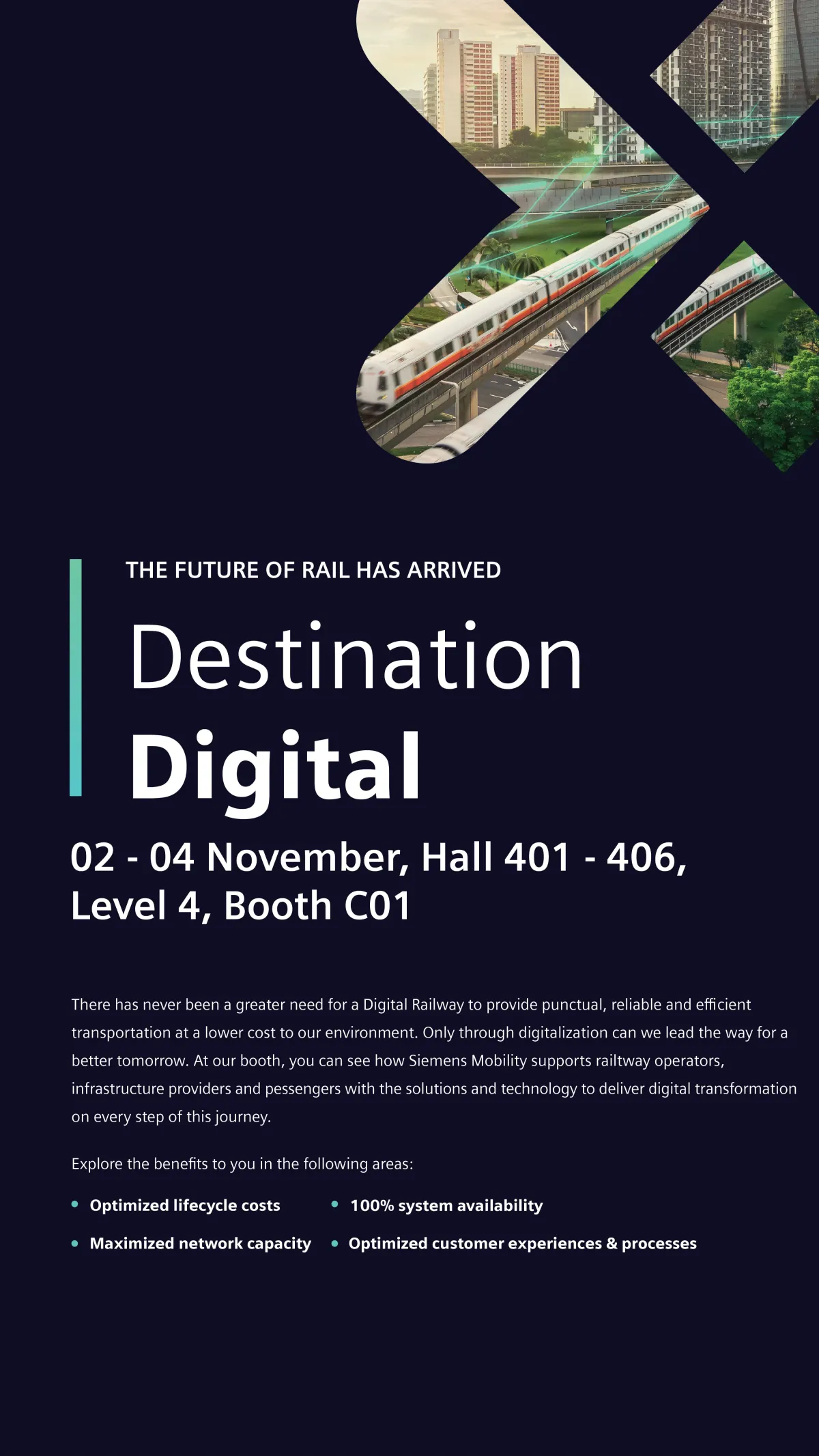 Digitalization is helping us to master these trends and continuously transform the way we travel. Therefore, we are constantly innovating our portfolio in our core areas: rolling stock, rail automation and electrification, intelligent traffic systems, related services, and turnkey projects, to shape the future of mobility.