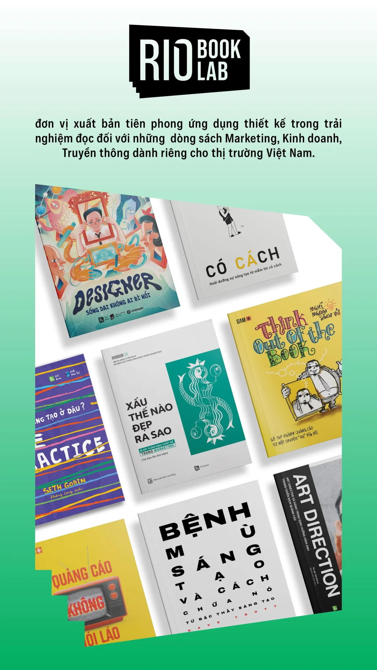 RIO Book Lab là đơn vị tiên phong trong xuất bản đổi mới và đóng gói sản phẩm tri thức đa định dạng tại Việt Nam. Chúng tôi tin rằng một xã hội phát triển được kiến tạo từ sự cộng hưởng và lan toả tri thức.