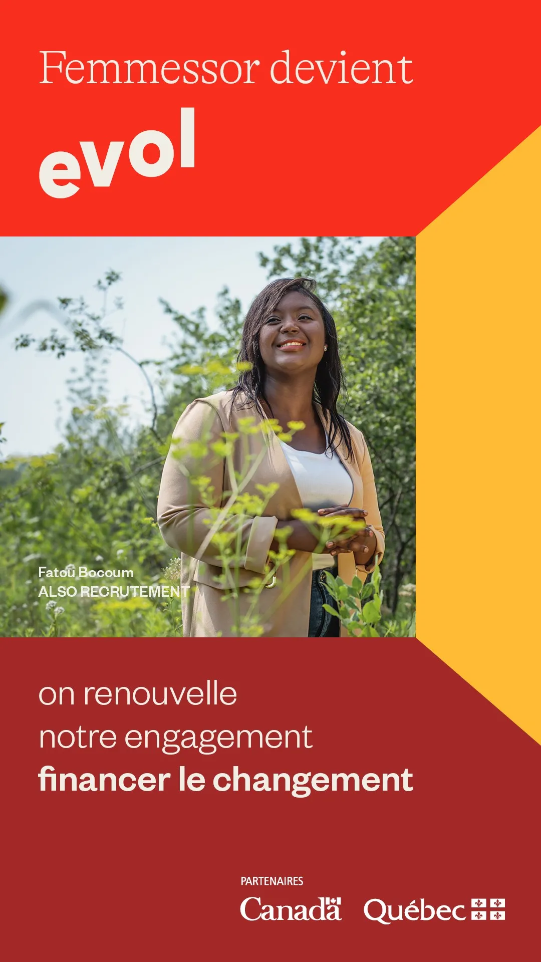 Evol est issue de l’évolution de l’organisation Femmessor qui œuvre depuis plus de 25 ans au développement de l'entrepreneuriat féminin au Québec et élargit sa mission pour soutenir davantage d’entreprises à propriété diversifiée et inclusive. Evol met ainsi son expertise en financement et en accompagnement au profit des entrepreneur·e·s en quête d’équité afin de leur donner les moyens de participer activement à la création d’un monde meilleur.