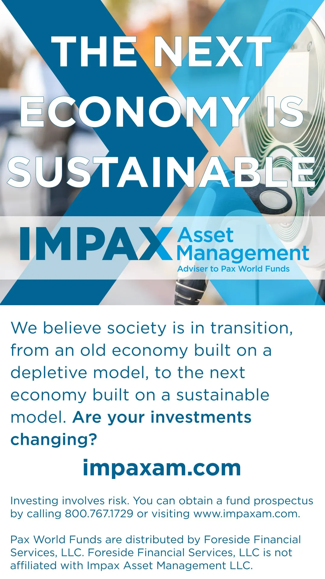 Impax, adviser to the Pax World Funds, is a specialist asset manager, with £34.4bn / US$47.6bn as of 30 June 2021 in both listed and private markets strategies, investing in the opportunities arising from the transition to a more sustainable global economy. Impax believes that capital markets will be shaped profoundly by global sustainability challenges, including climate change, pollution and essential investments in human capital, infrastructure and resource efficiency. These trends will drive growth for well-positioned companies and create risks for those unable or unwilling to adapt. The company seeks to invest in higher quality companies with strong business models that demonstrate sound management of risk. Impax offers a well-rounded suite of investment solutions spanning multiple asset classes seeking superior risk-adjusted returns over the medium to long term. Impax has ca. 200 staff across six offices in the United Kingdom, the United States, Ireland and Hong Kong, making it one of the investment management sector’s largest investment teams dedicated to sustainable development.