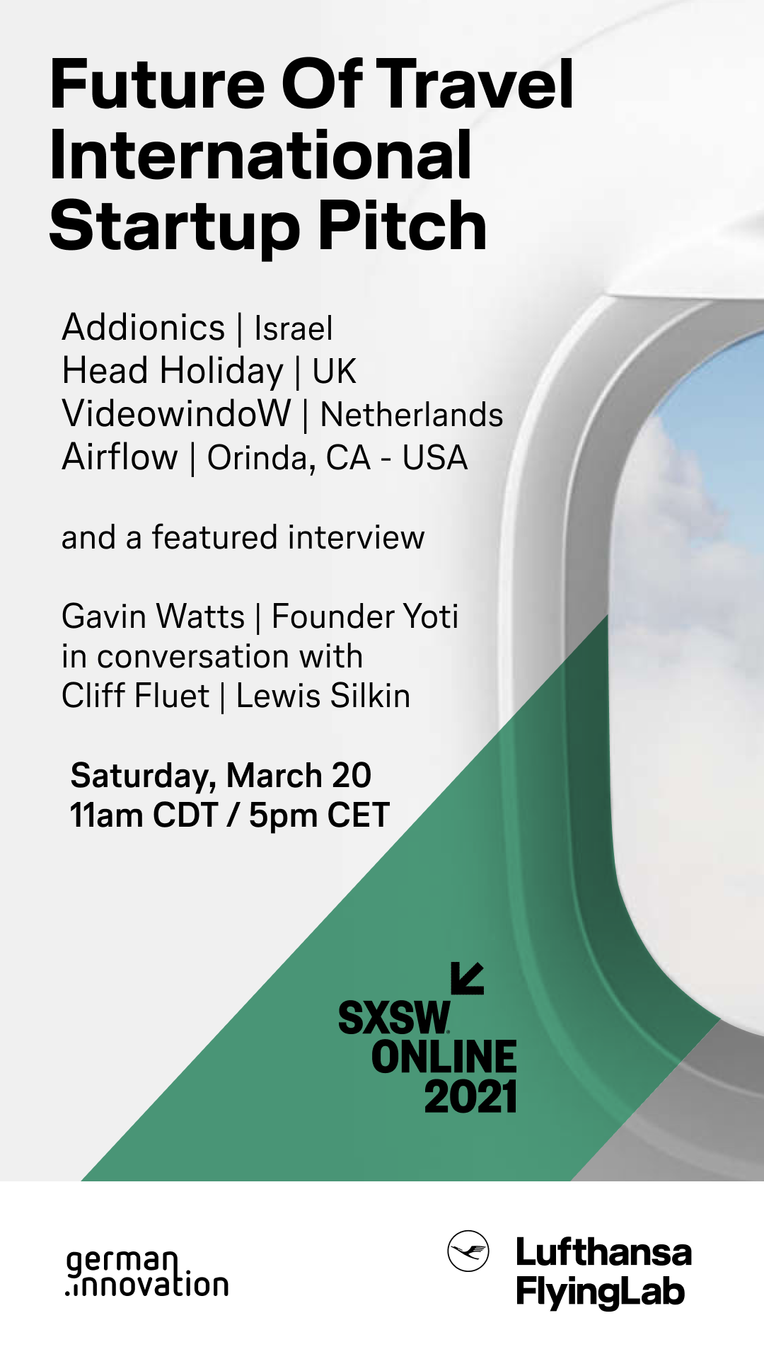 This year, Lufthansa FlyingLab is proud to partner with german.innovation for SXSW Online, the global event most receptive to the emerging digital world. Together we will explore some of the “new ways” brought to light by the pandemic. Join us for a series of talks delving into the latest developments in Sustainability, Data, and Smart Travel.