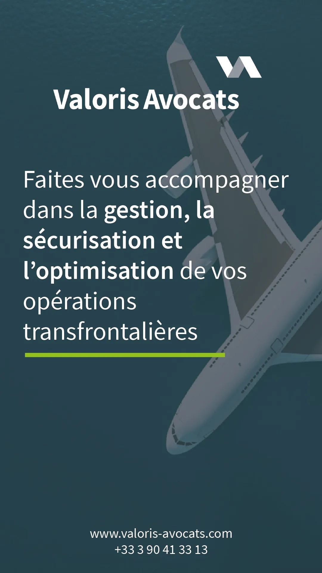 Tourné vers l’international, Valoris Avocats, dont les équipes sont trilingues (français, anglais, allemand), bénéficie d’un réseau de partenaires de qualité au-delà des frontières (Allemagne, Suisse, Italie, Royaume-Uni, Chine, Etats-Unis) dans les domaines du droit, du chiffre et de la finance.