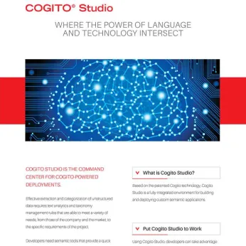 COGITO’s patented Natural Language Understanding provides a highly accurate understanding of the content and context of all your data and the intelligence smarts that over 300 successful COGITO- based solutions have delivered. You will be in the same league as Lloyds Bank, US Department of Defense and the UK, Italian, French and other European and North American Governments.