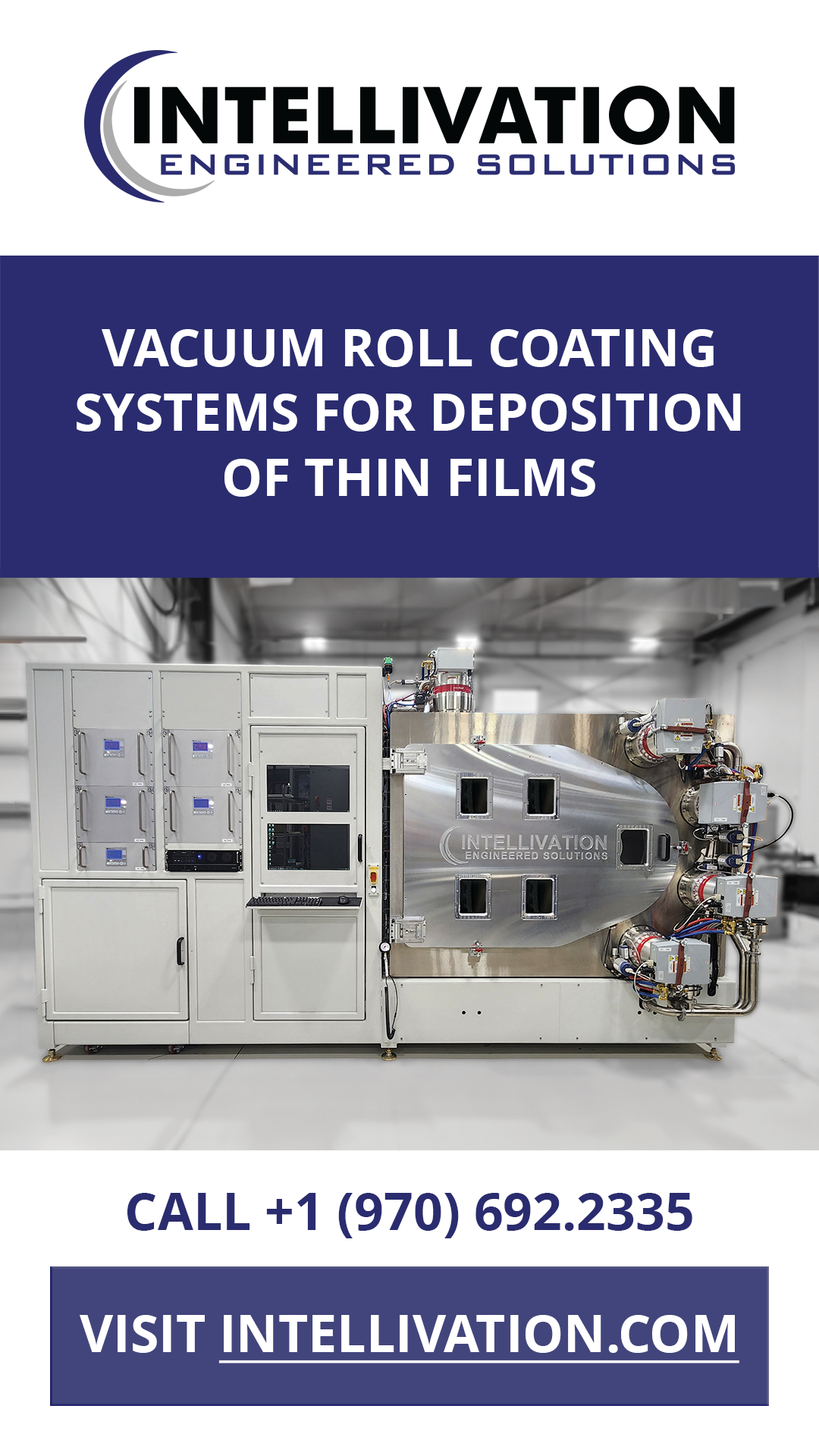Intellivation is a leading manufacturer of vacuum web coating systems featuring innovative design and powerful automation. Our products serve high tech application areas including flexible electronics, thin film battery, ultracapacitors, superconductors, solar, optical coatings, medical devices, defense, and more. The R2R Series web coating system has a compact and ergonomic design for coating flexible polymer, metal, ceramic and other flexible materials including a wide range of thin films up to 2 meters wide. Intellivation offers other depositions sources and pretreatments to deliver a wide range of solutions for vacuum coating technologies Our on-site application laboratory featuring the R2R500 roll-to-roll coater allows us to support customers with thin film coating development services on flexible substrates and includes a full materials characterization lab for process and product development.
