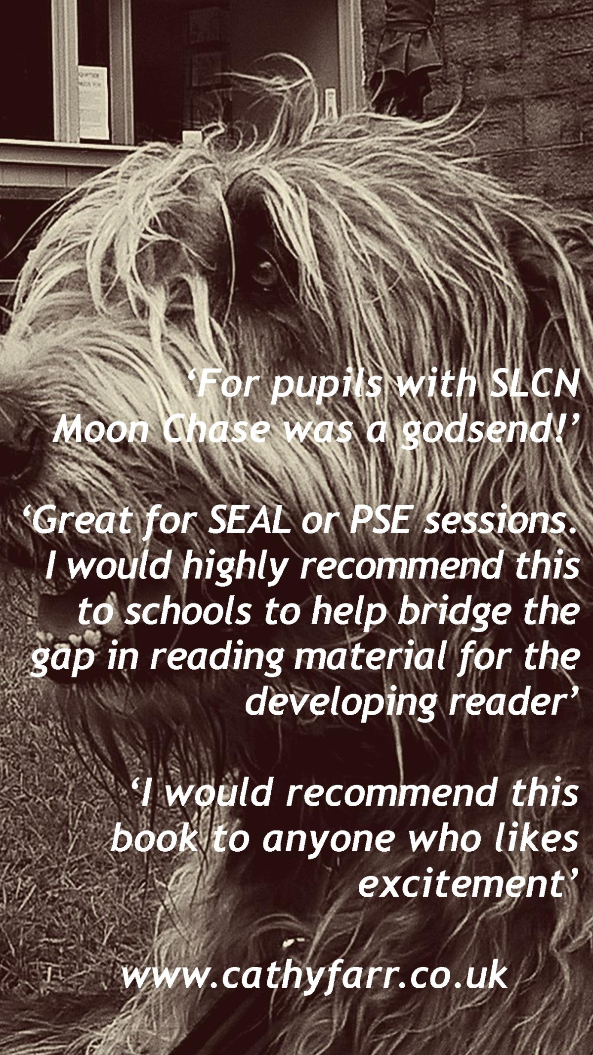 Cathy Farr is a writer. Following the release of her second fantasy adventure, Moon Crossing, Cathy was invited to an SLCN Unit in her local school. She quickly realised that the language in the story was too complex for her young audience and so, on the hoof, she 'translated' it into something they not only understood, but loved it!