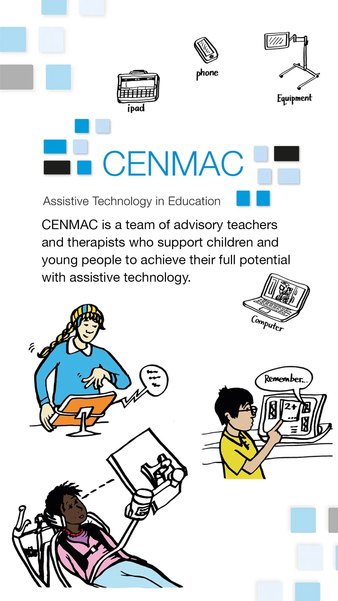 CENMAC is a unique, London-based support service offering assessments, reviews and loan of equipment to help pupils with a disability access the curriculum, communicate and learn using assistive technology.