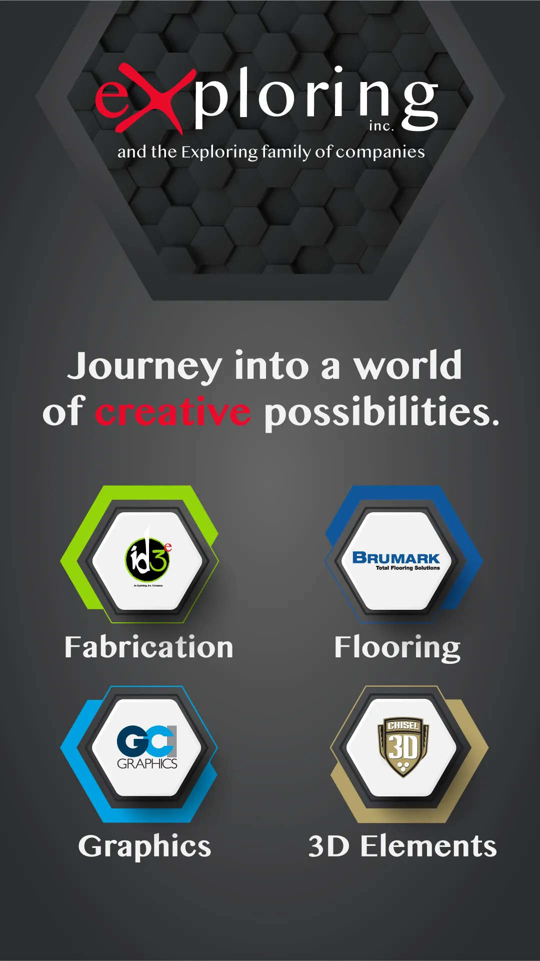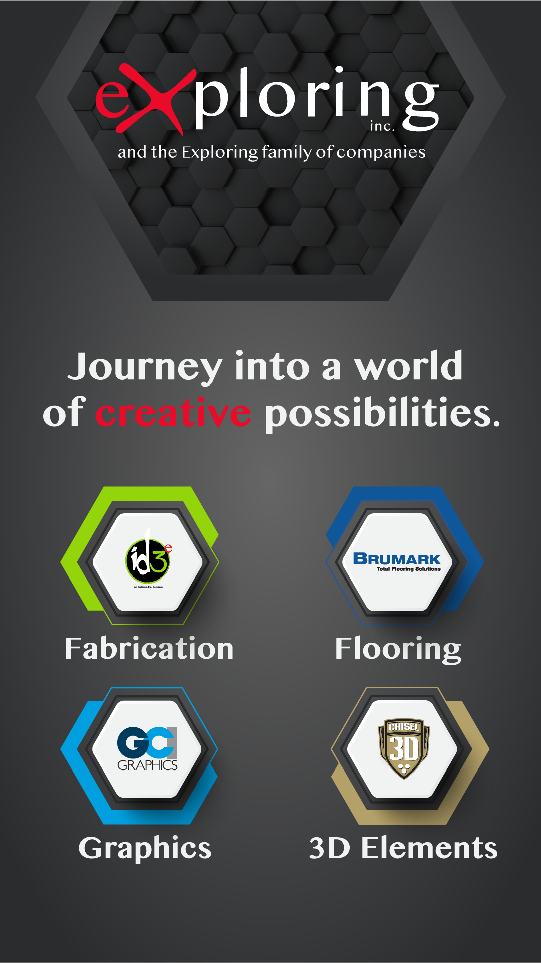 Exploring, Inc. is the parent company of several rapidly growing Atlanta-based companies, including ID3 Group, Brumark, Shelmarc Carpets, Chisel 3D, Atlantis WaterJet and GCI Graphics. These companies offer services for amazing exhibits, events and environments — including tradeshow flooring and full-service custom fabrication — as well as commercial and hospitality flooring. Exploring’s operations include facilities in Atlanta and Dalton, Georgia and a distribution facility in Las Vegas. Founded in 1999, Exploring has been named to the Inc. 5000 in 2009, 2010, 2011, 2014, 2016 and 2018. More information is available at www.exploring.com.