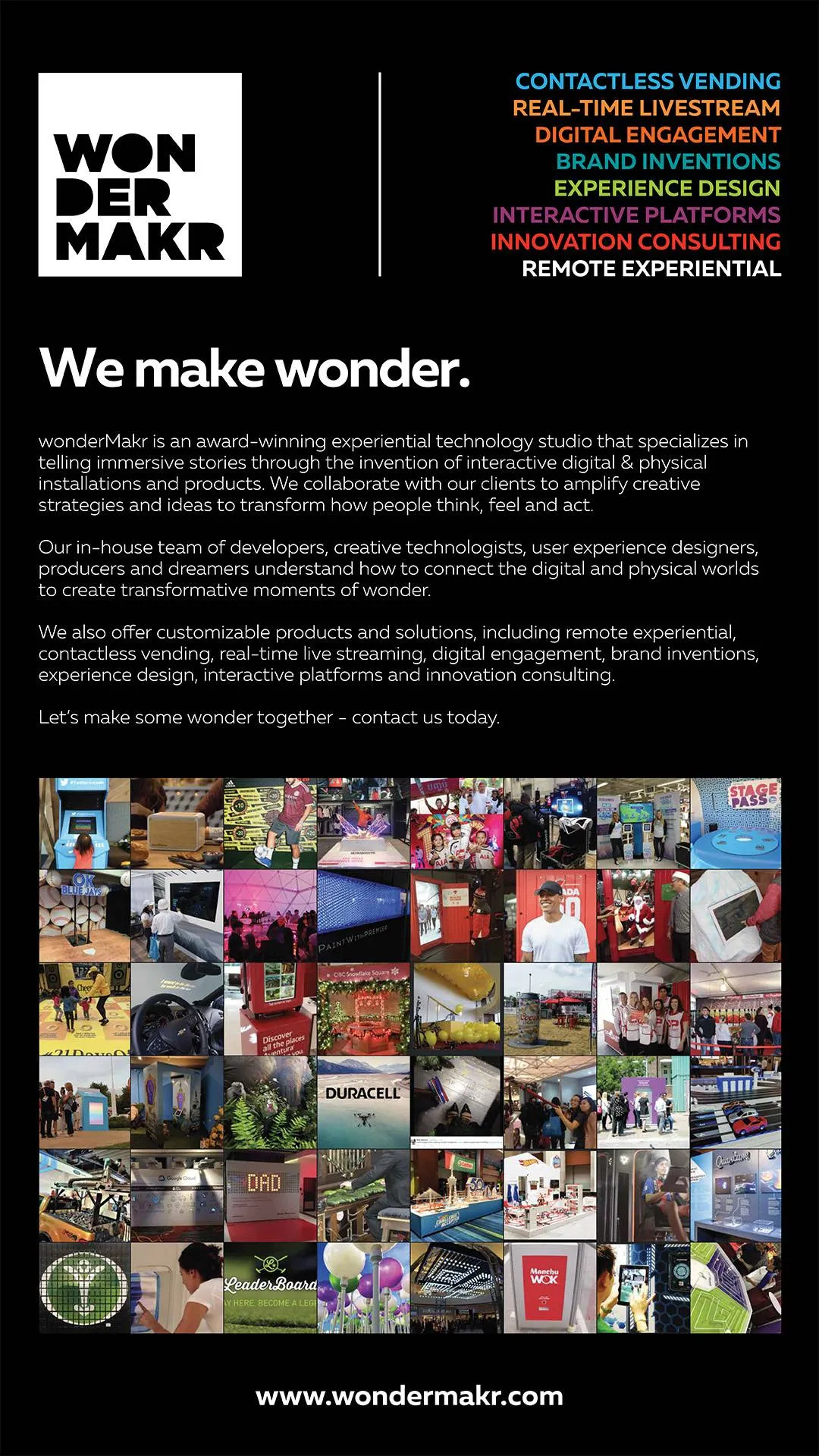 wonderMakr is an award-winning experiential technology studio that specializes in telling immersive stories through the invention of interactive digital & physical installations and products.