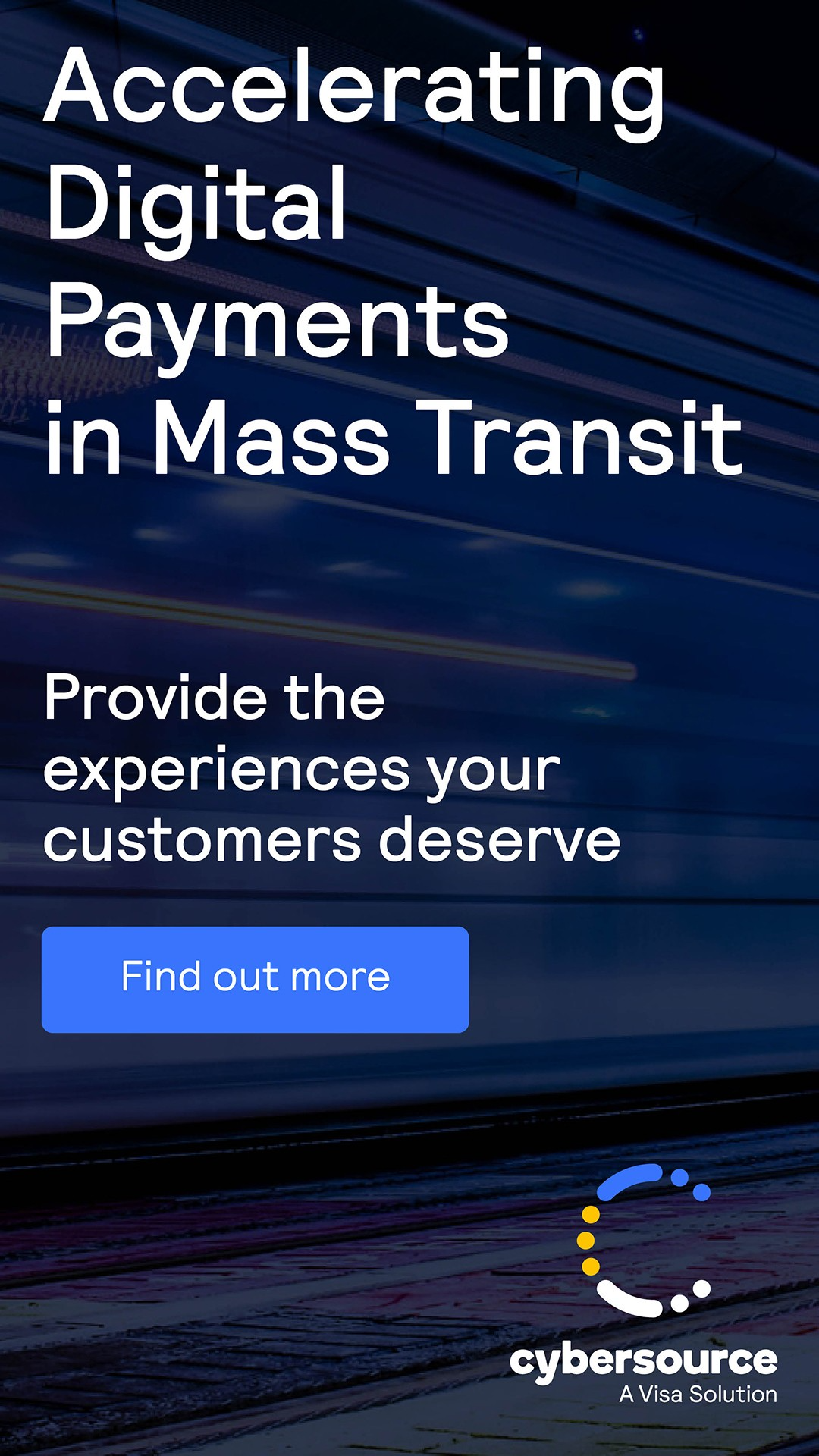 Cybersource is a Visa solution, that delivers integrated payment solutions to transport operators worldwide. Via a single connection, our customers can accept payments across multiple channels, and access a vast ecosystem of acquirers and solution providers – helping simplify the implementation of open-loop payments, and speed deployment.