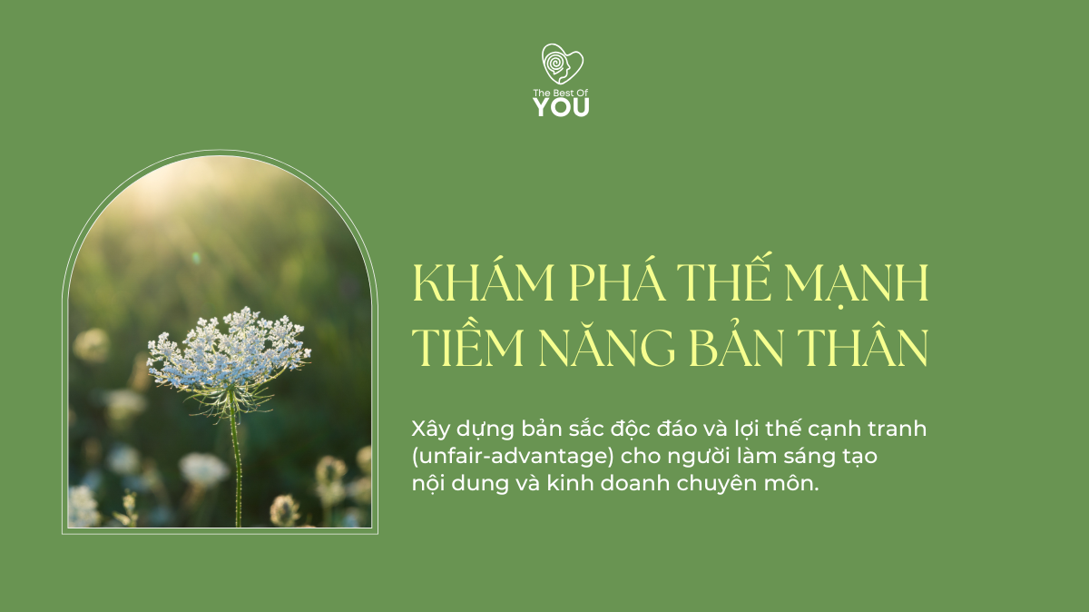 Khám phá thế mạnh và tiềm năng bản thân, xây dựng bản sắc độc đáo và lợi thế cạnh tranh (unfair-advantage) cho người làm sáng tạo nội dung và kinh doanh chuyên môn.
