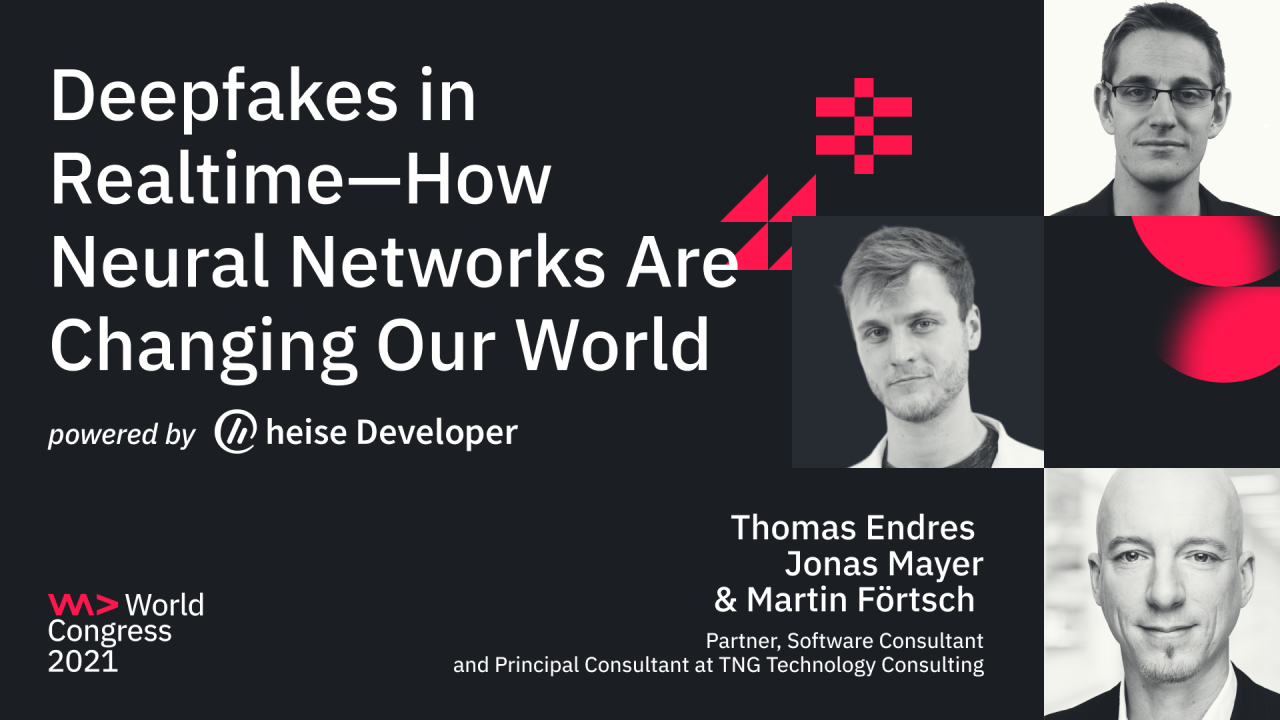 IIn this talk, Thomas Endres, Martin Förtsch and Jonas Mayer will give an entertaining and vivid introduction into the world of real-time Deepfakes. In doing so, they particularly focus on the deep learning techniques used in within the application. Several live demonstrations will complete this event.