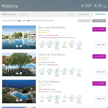 The bd4travel Experience Optimisation Platform predicts individual user intent, aligns the next best actions through deep product and service profiling and matches them in real-time. This creates personalized and powerful 1:1 e-commerce experiences.