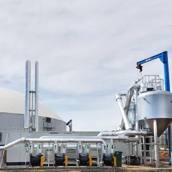 Solutions for biogas start with single gas heat exchanger and can end up in a plug-and-play FriCon gas cooling unit. By cooling down the biogas below the dew point of the gas, water fraction is separated from the gas, preparing the gas for further processes.
